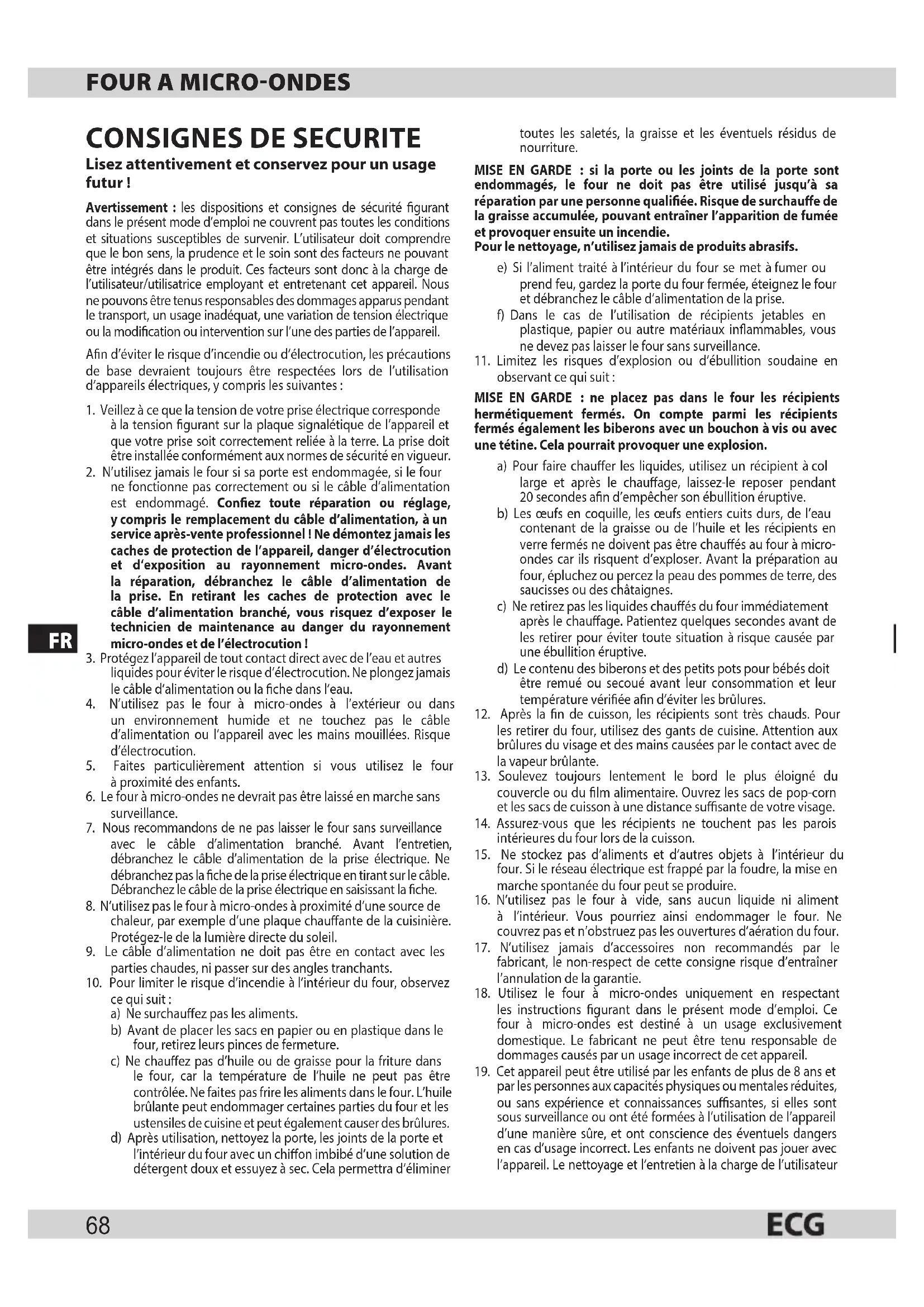 MTD 2531 GISB - Four à micro-ondes ECG - Notice d'utilisation et mode d'emploi gratuit
