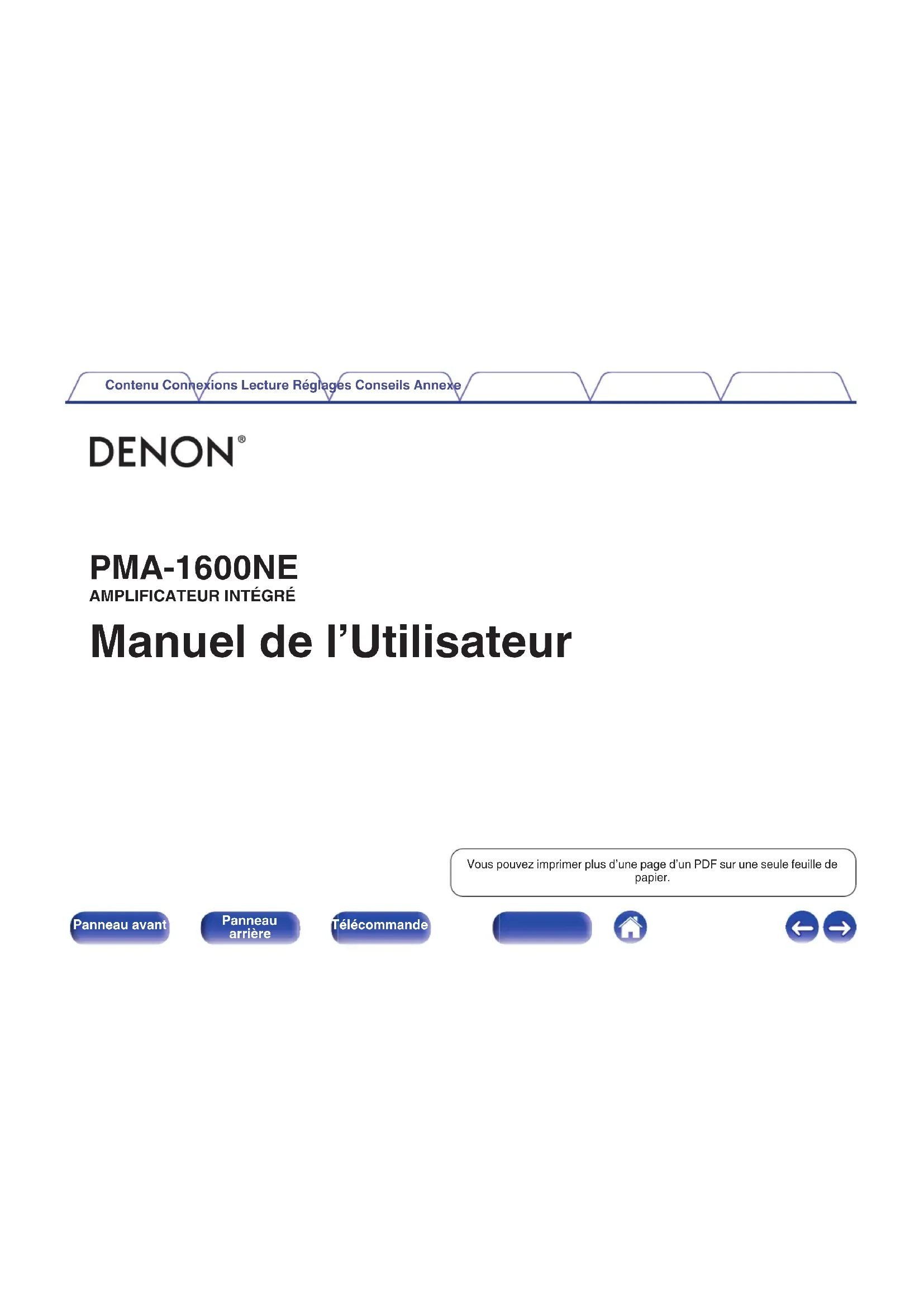 Retrouvez gratuitement la notice de l'appareil PMA1600NE DENON au format PDF.