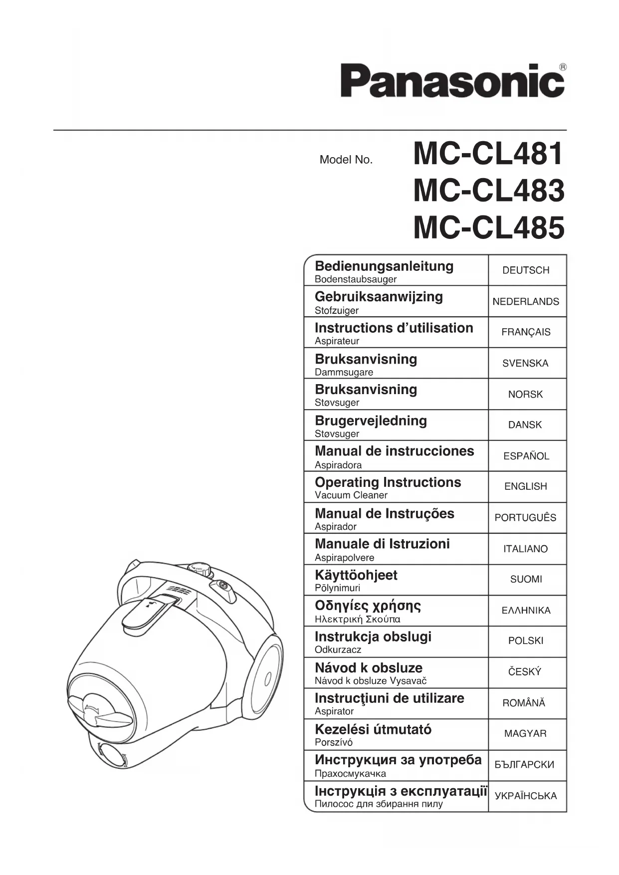 MCCL483 - Aspirateur PANASONIC - Notice d'utilisation et mode d'emploi gratuit