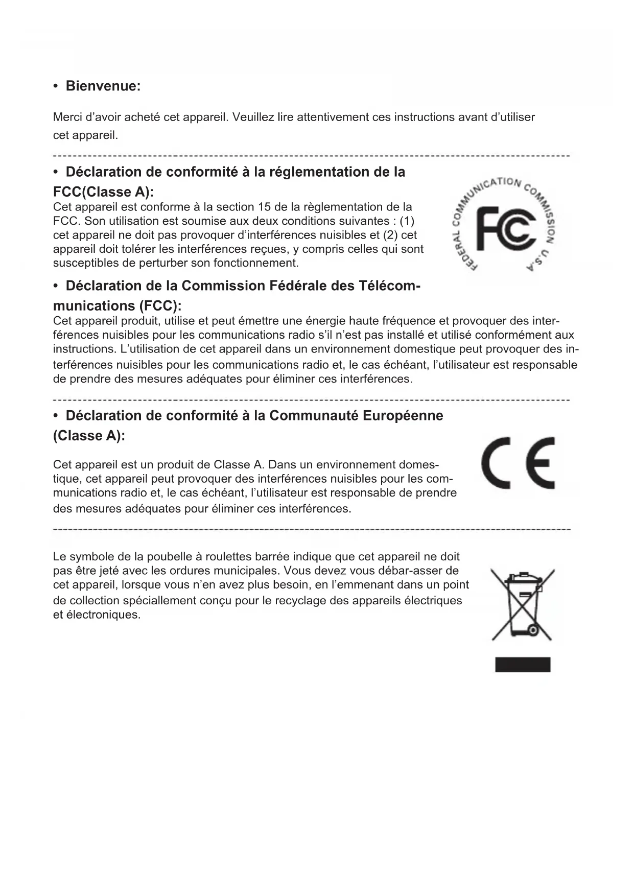 - Déclaration de conformité à la réglementation de la FCC(Classe A):