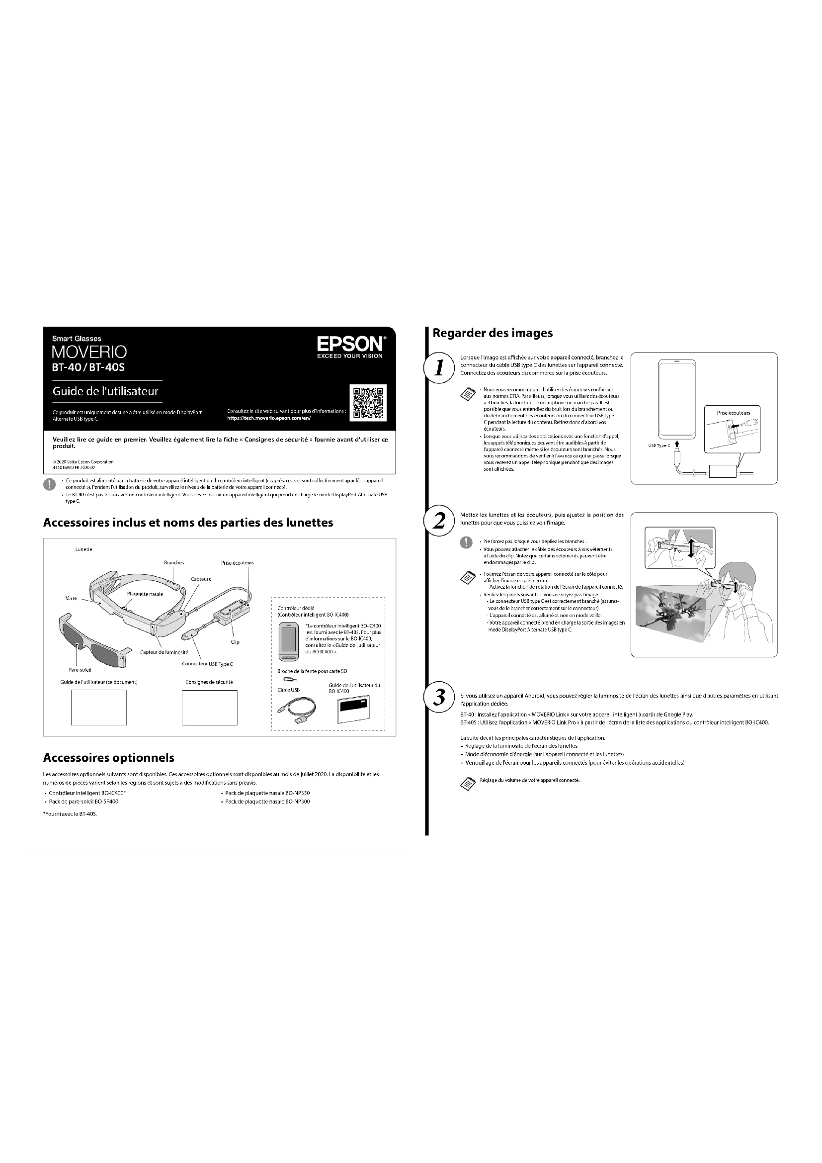 Moverio BT40S - Montre connectée EPSON - Notice d'utilisation et mode d'emploi gratuit