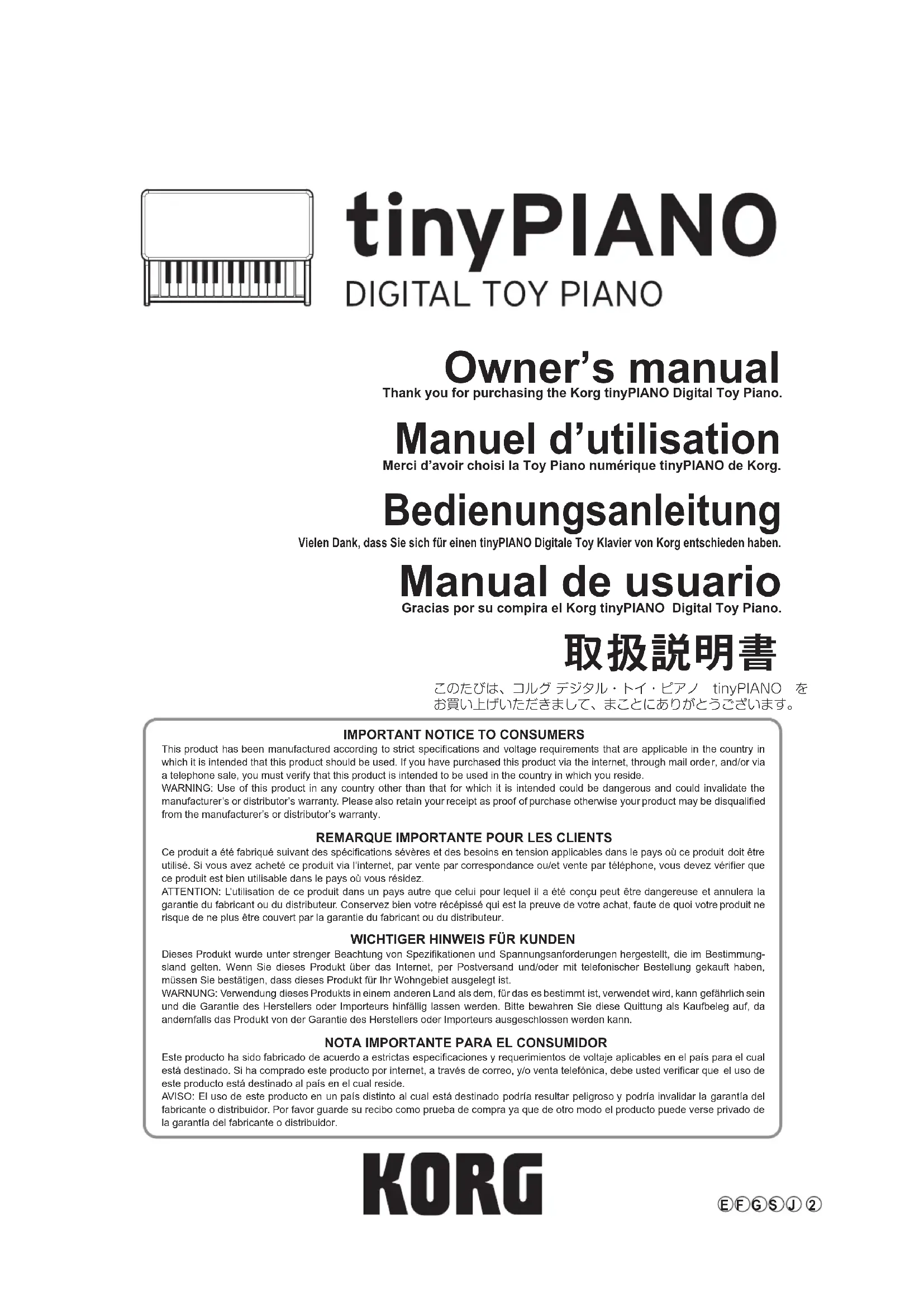 Retrouvez gratuitement la notice de l'appareil tinyPIANOBKKM KORG au format PDF.
