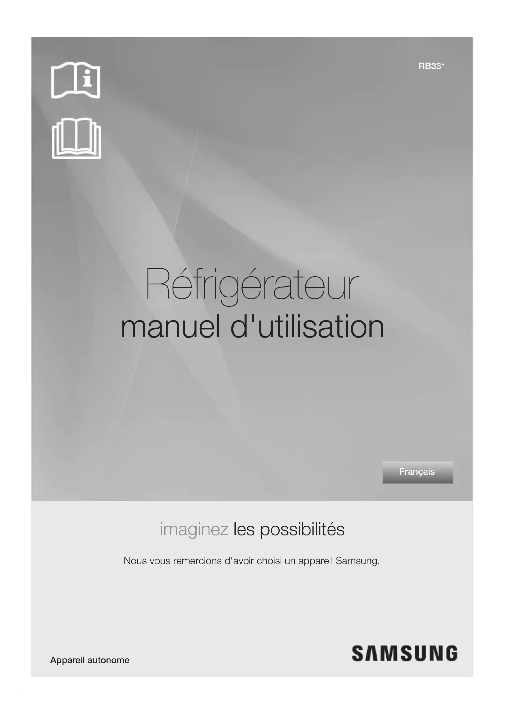 Réfrigérateur manuel d'utilisation imaginez les possibilités Nous vous remercions d'avoir choisi un appareil Samsung. RB33* Français Appareil autonomeconsignes de sécurité