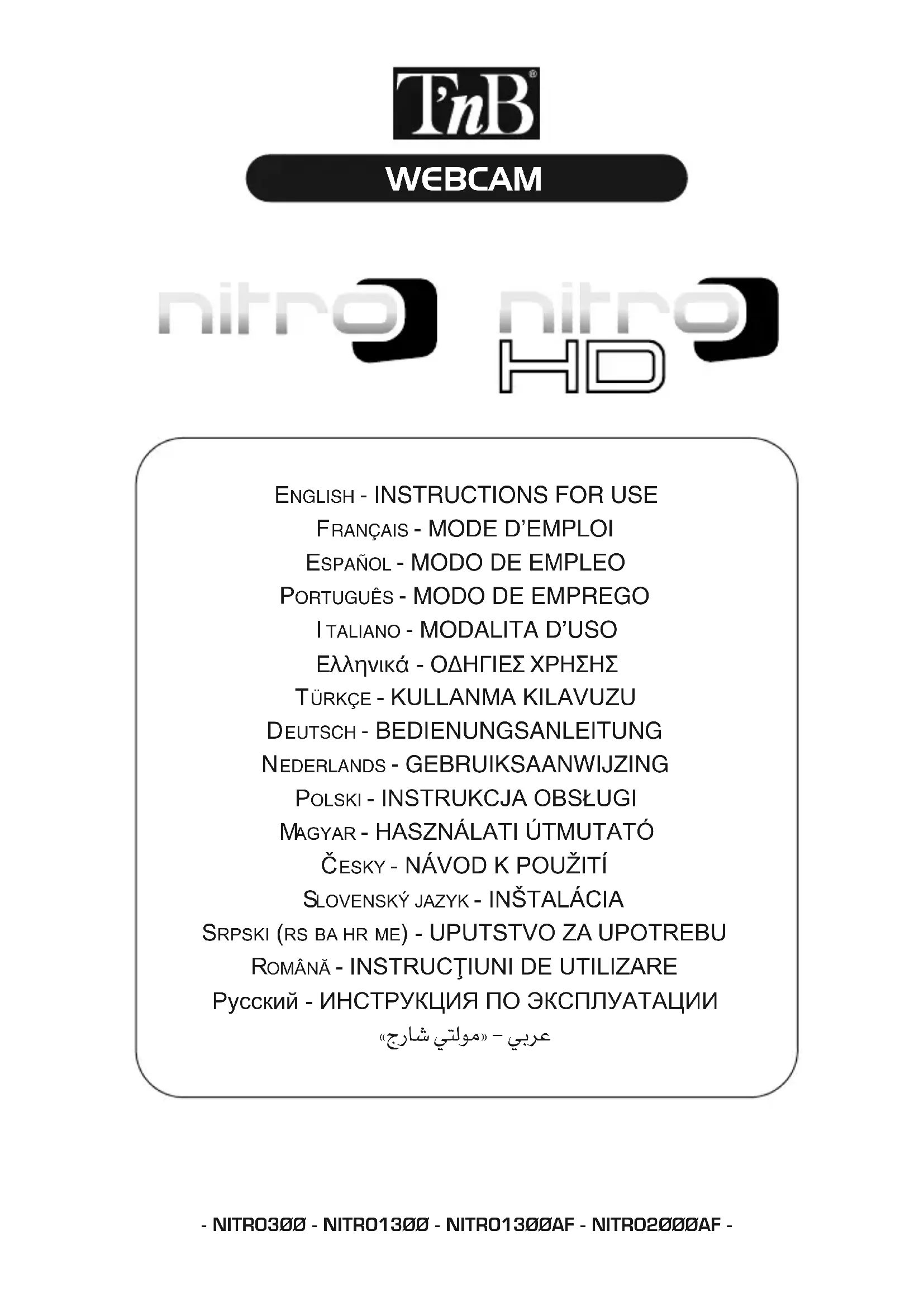 Téléchargez la notice de votre Webcam au format PDF gratuitement ! Retrouvez votre notice NITRO1300AF - TNB et reprennez votre appareil électronique en main. Sur cette page sont publiés tous les documents nécessaires à l'utilisation de votre appareil NITRO1300AF de la marque TNB.