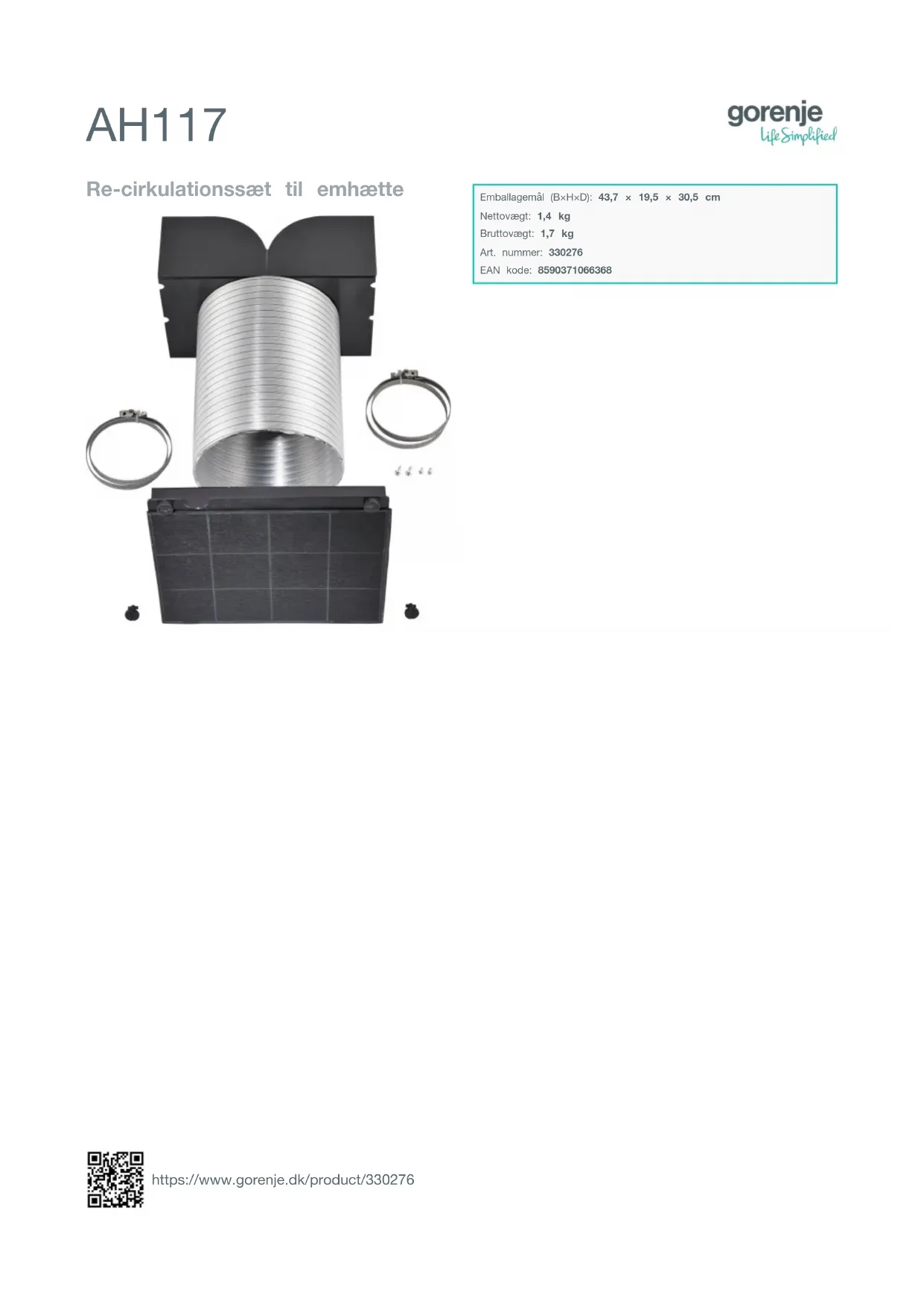 Le manuel d'utilisation est généralement inclus dans l'emballage. Vous pouvez également le télécharger sur le site web de GORENJE en recherchant le modèle AH117.