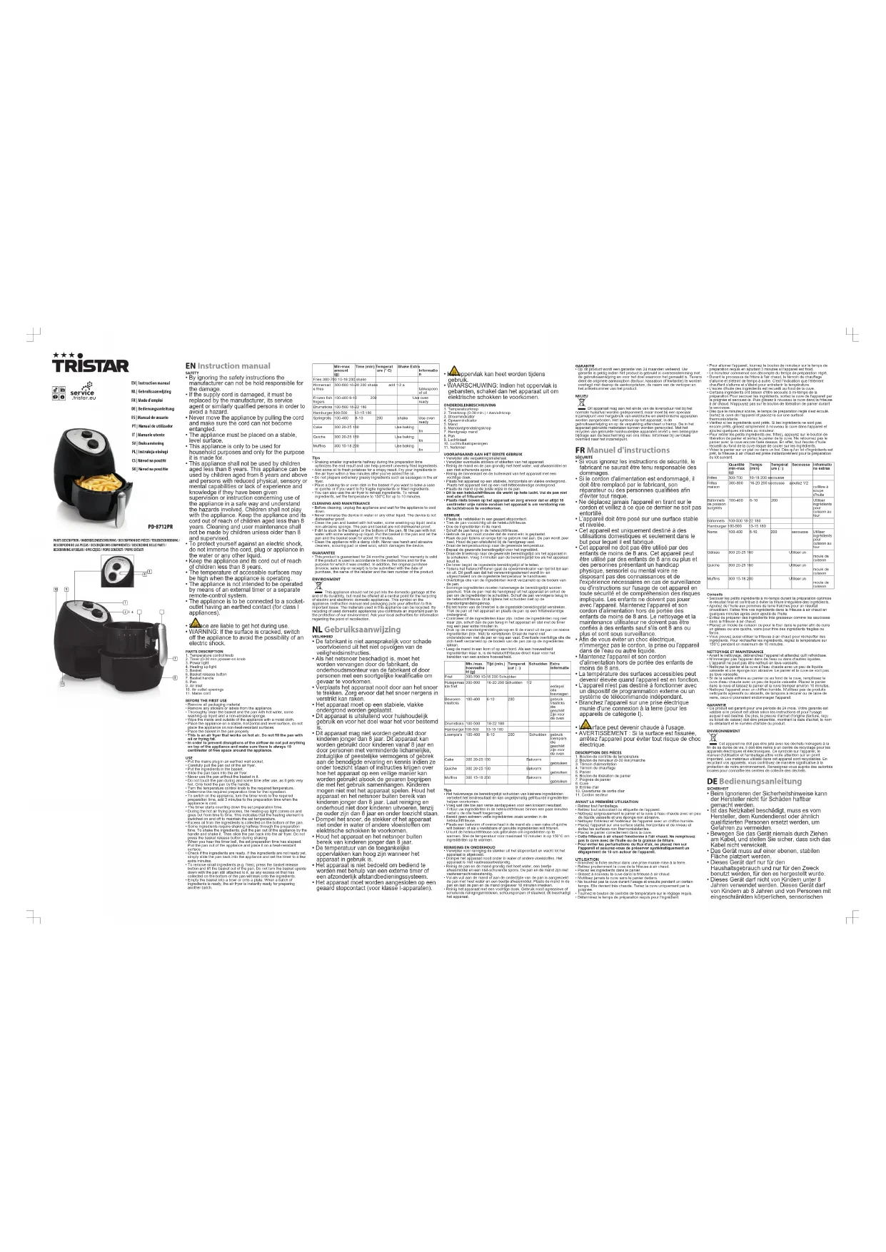PD8712PR - Friteuse TRISTAR - Notice d'utilisation et mode d'emploi gratuit