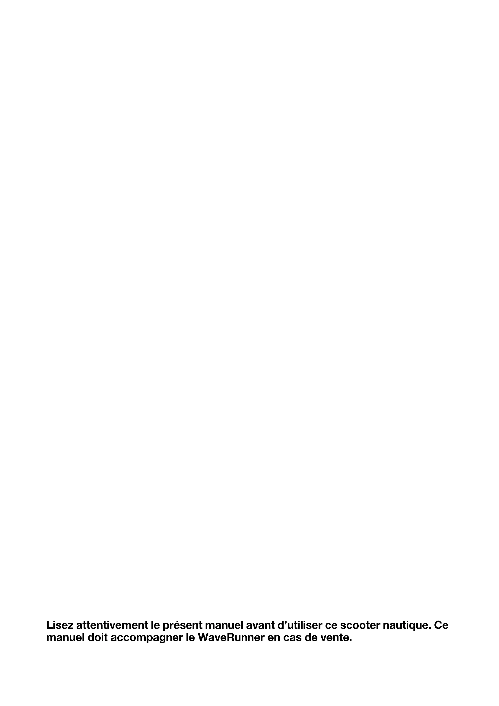 Lisez attentivement le présent manuel avant d'utiliser ce scooter nautique. Ce manuel doit accompagner le WaveRunner en cas de vente.