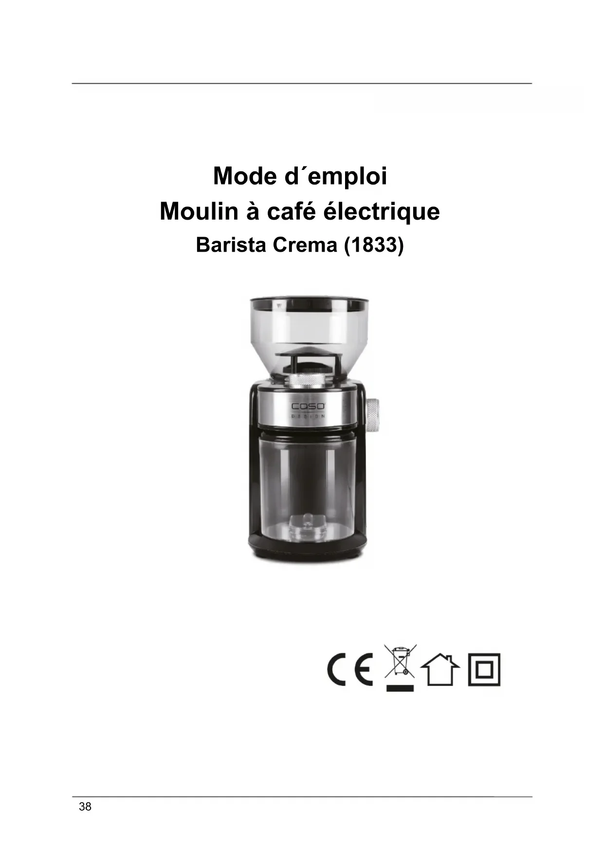 Barista Crema 1883 - Moulin à café CASO - Notice d'utilisation et mode d'emploi gratuit