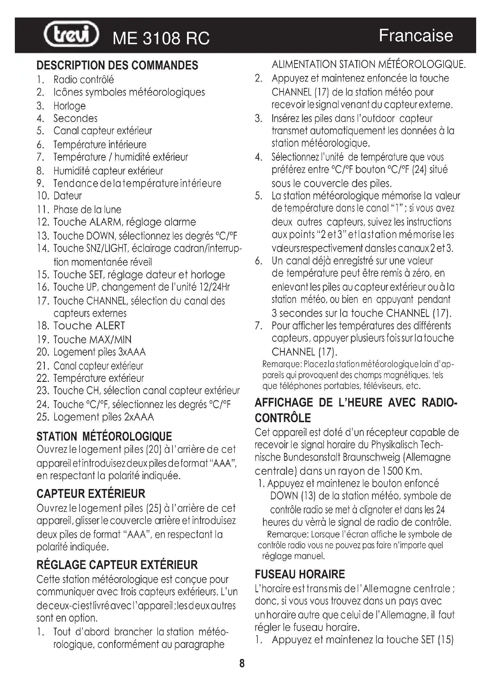 ME 3108 RC - Station Météo Trevi - Notice d'utilisation et mode d'emploi gratuit
