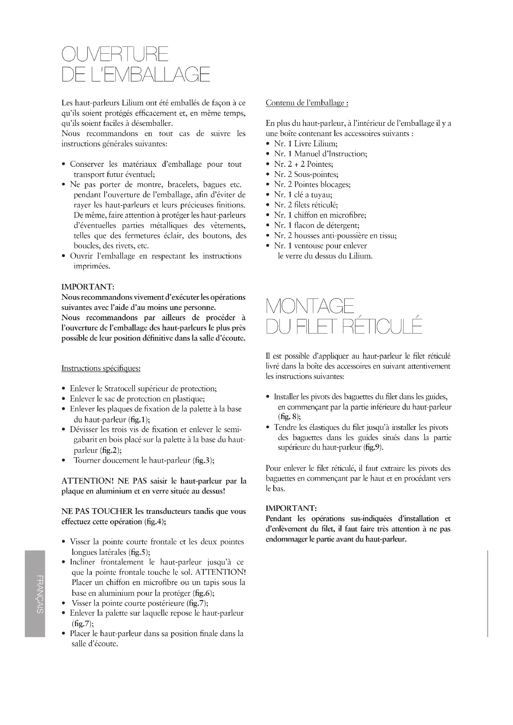 Les haut-parleurs Lilium ont ete emballés de façon a ce quils soient protégés efficacement et, en meme temps, quils soient faciles a desemballer.
