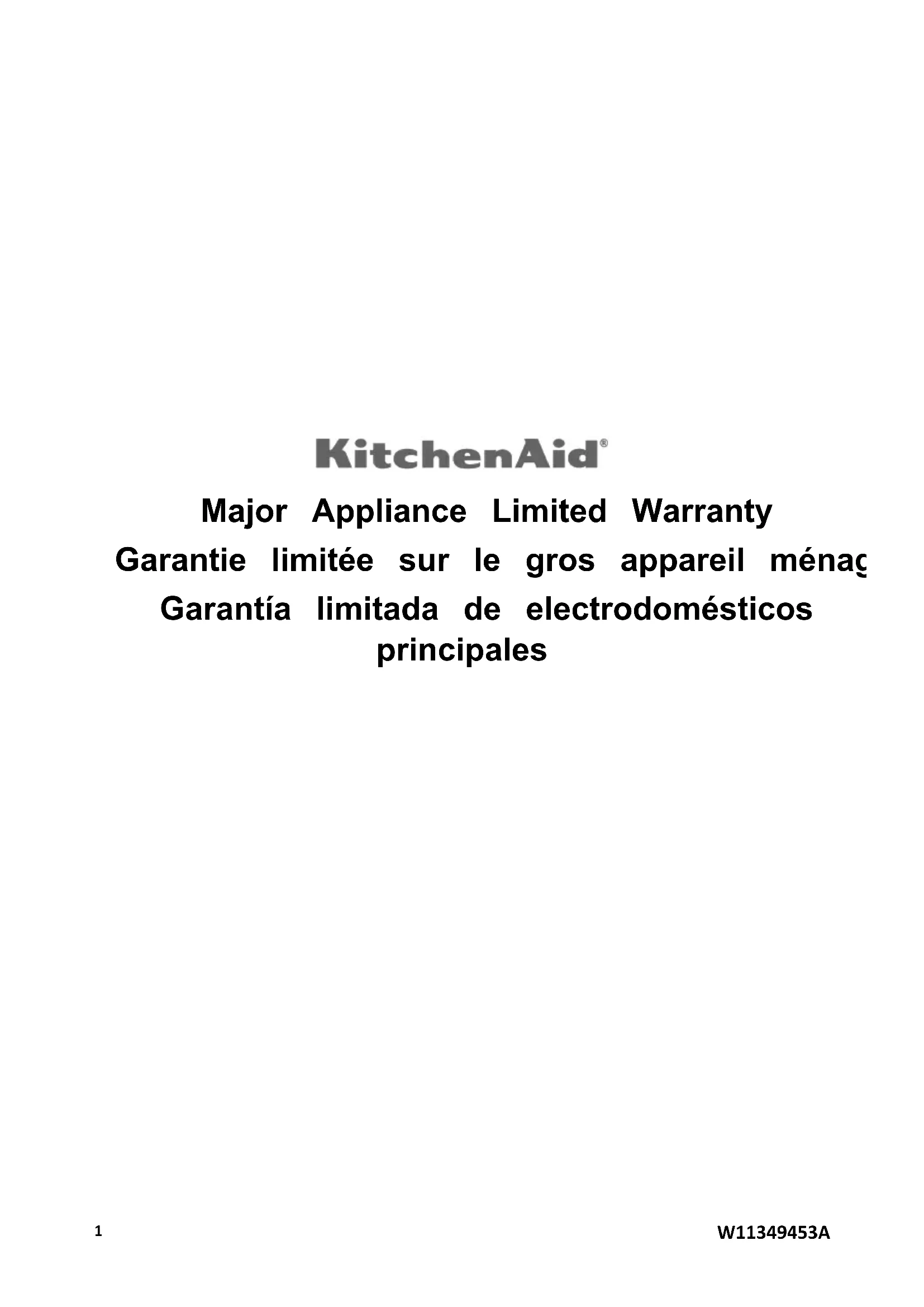 perte de nourriture ou de médicaments) résultant du bris de l’appareil. CLAUSE D'EXONÉRATION DE RESPONSABILITÉ AU TITRE DES GARANTIES IMPLICITES Les garanties implicites, y compris les garantiesimplicites de qualité marchande u d’aptitude à un usage particulier, sont limitées à dix ans ou à la plus courte période autorisée par la loi. Certains États et certaines provinces ne permettent pas de limitation sur la durée des garanties implicites de qualité marchandeou d’aptitude à un usage particulier, de sorte que la limitation ci-dessus peut ne pas être applicable dans votre cas. FAÇON DONT LES LOIS DES ÉTATS S’APPLIQUENT Cette garantie vous confère des droits juridiques spécifiques et vous pouvez également jouir d’autres droits qui peuvent varier d’un État à l’autre ou d’une province à l’autre.7 Garantía limitada de electrodomésticos principales Antes de contactarnos para organizar la visita del servicio técnico, algunas preguntas pueden resolverse sin servicio técnico. Visite la sección "Solución de problemas" en https://www.kitchenaid.com/owners para obtener ayudar sobre Solución de problemas. Au Canada, visitez le https://www.kitchenaid.ca/owners.