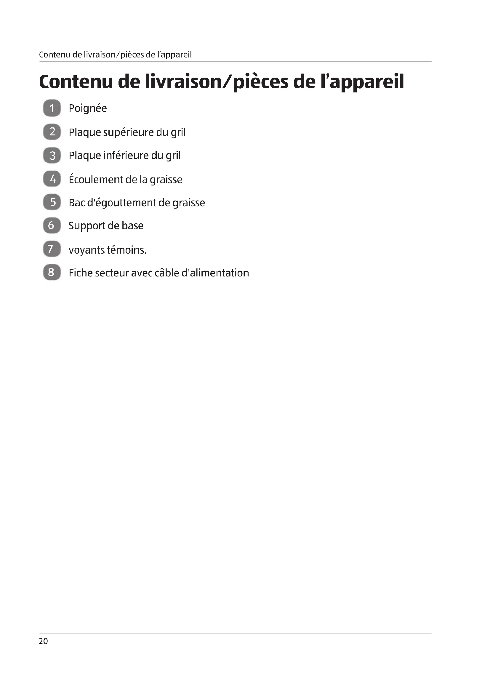 Contenu de livraison⁄pièces de l’appareil