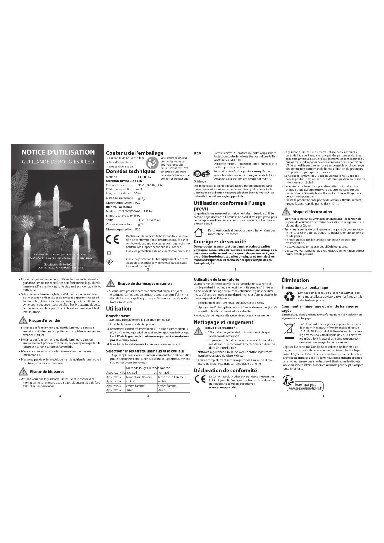 La guirlande lumineuse est exclusivement destinée à être utilisée comme ogne décorat à l'intérieur. Le produit n'est pas prévuoy pour l'éclairage normal des peuples et est donc pour être utilisé dans le domaine privée.