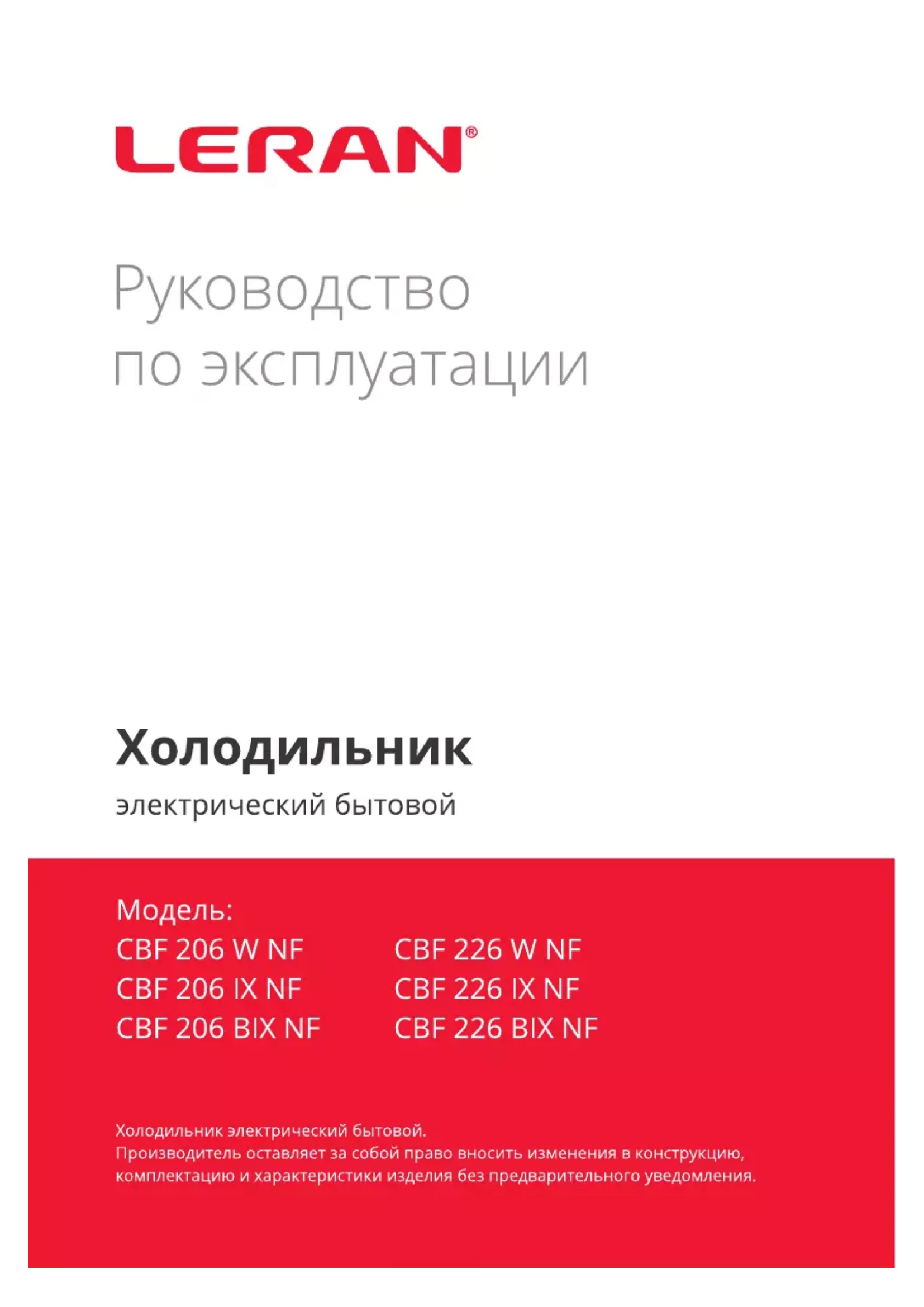 CBF 226 IX NF - Réfrigérateur LERAN - Notice d'utilisation et mode d'emploi gratuit