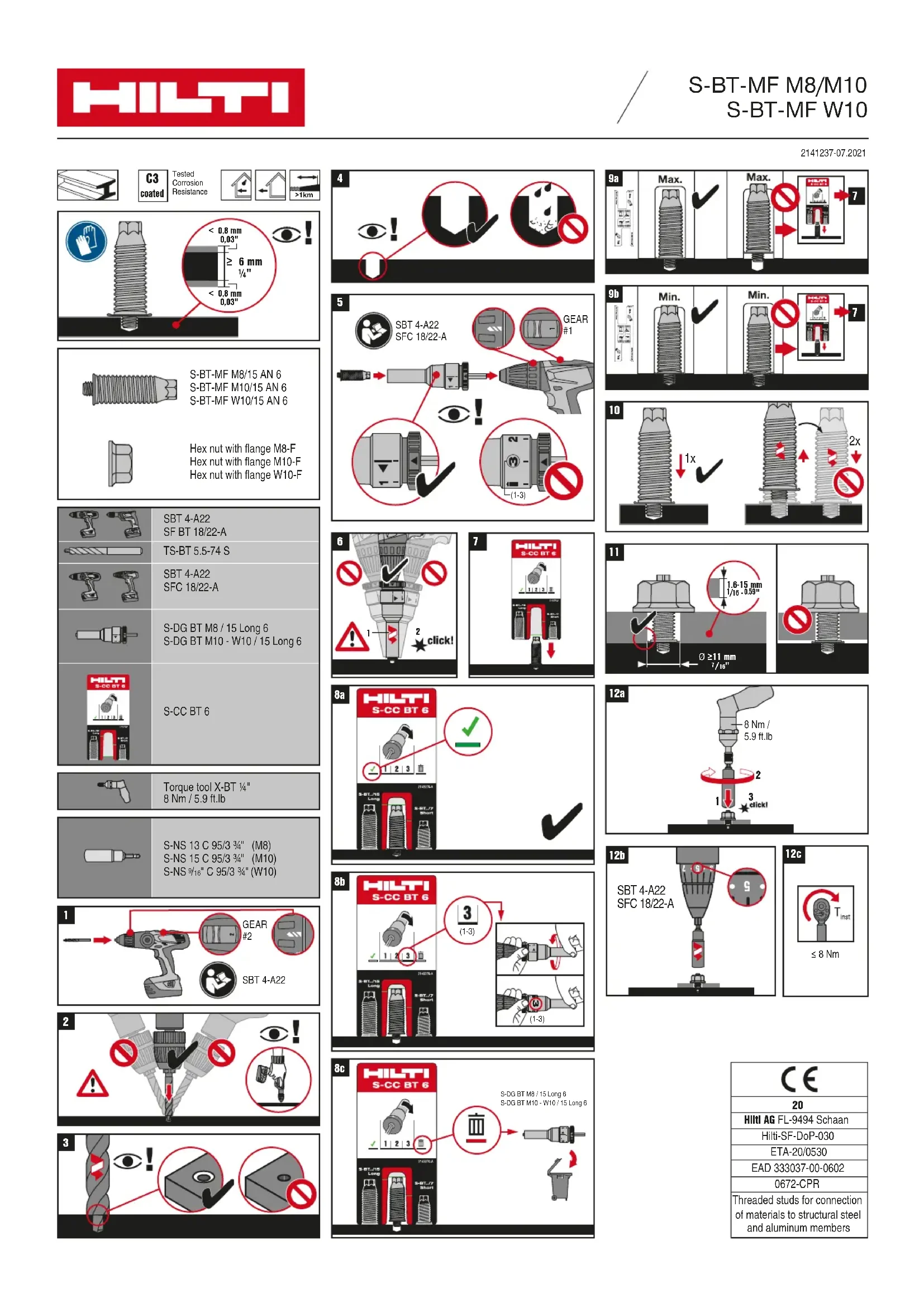 SBT MF - Fixation mécanique HILTI - Notice d'utilisation et mode d'emploi gratuit