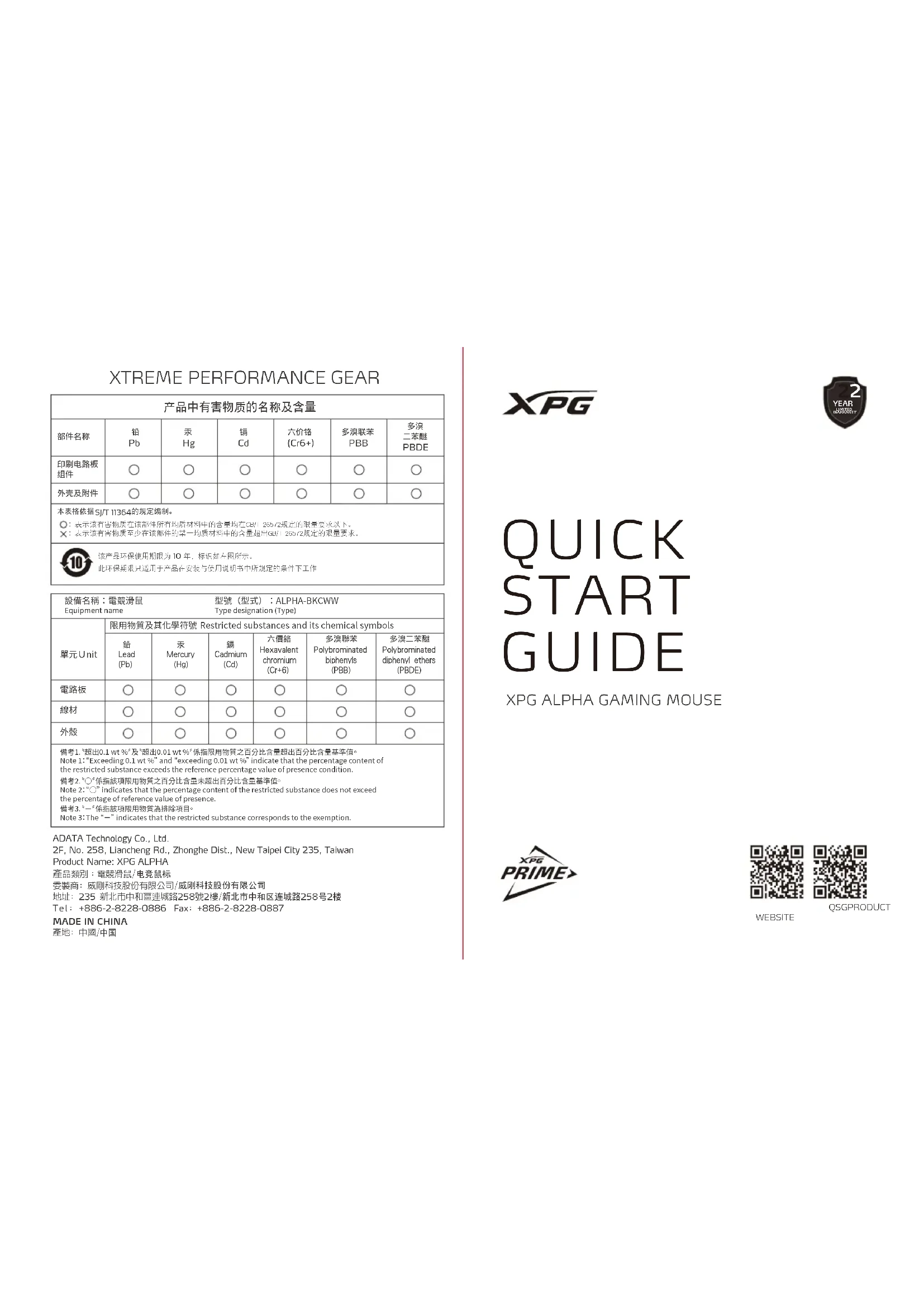 Tenez l'appareil à l'écart des liquides, de la vapeur excessive ou de l'humidité pour éviter tout risque de choc électrique. Si l'appareil entre en contact avec des liquides, débranchez-le immédiatement, mettez-le dans un endroit sec et contactez notre service après-vente pour assistance. N'utilisez l'appareil que dans la plage de température spécifiée de 0°C (32°F) à 40°C (104°F). Si la température sort de cette plage, débranchez et / ou éteignez l'appareil pour stabiliser la température à un niveau optimal. Si vous avez d'autres problèmes de fonctionnement avec l'appareil et que le dépannage normal ne fonctionne pas, veuillez débrancher l'appareil et contacter notre service après-vente pour assistance. N'essayez jamais d'installer ou de réparer l'appareil vous-même. Pour une utilisation correcte du produit et pour votre propre sécurité, veuillez suivre les instructions suivantes : Para preguntas frecuentes, información adicional e instrucciones de servicio, visite la página del producto en www.xpg.com.