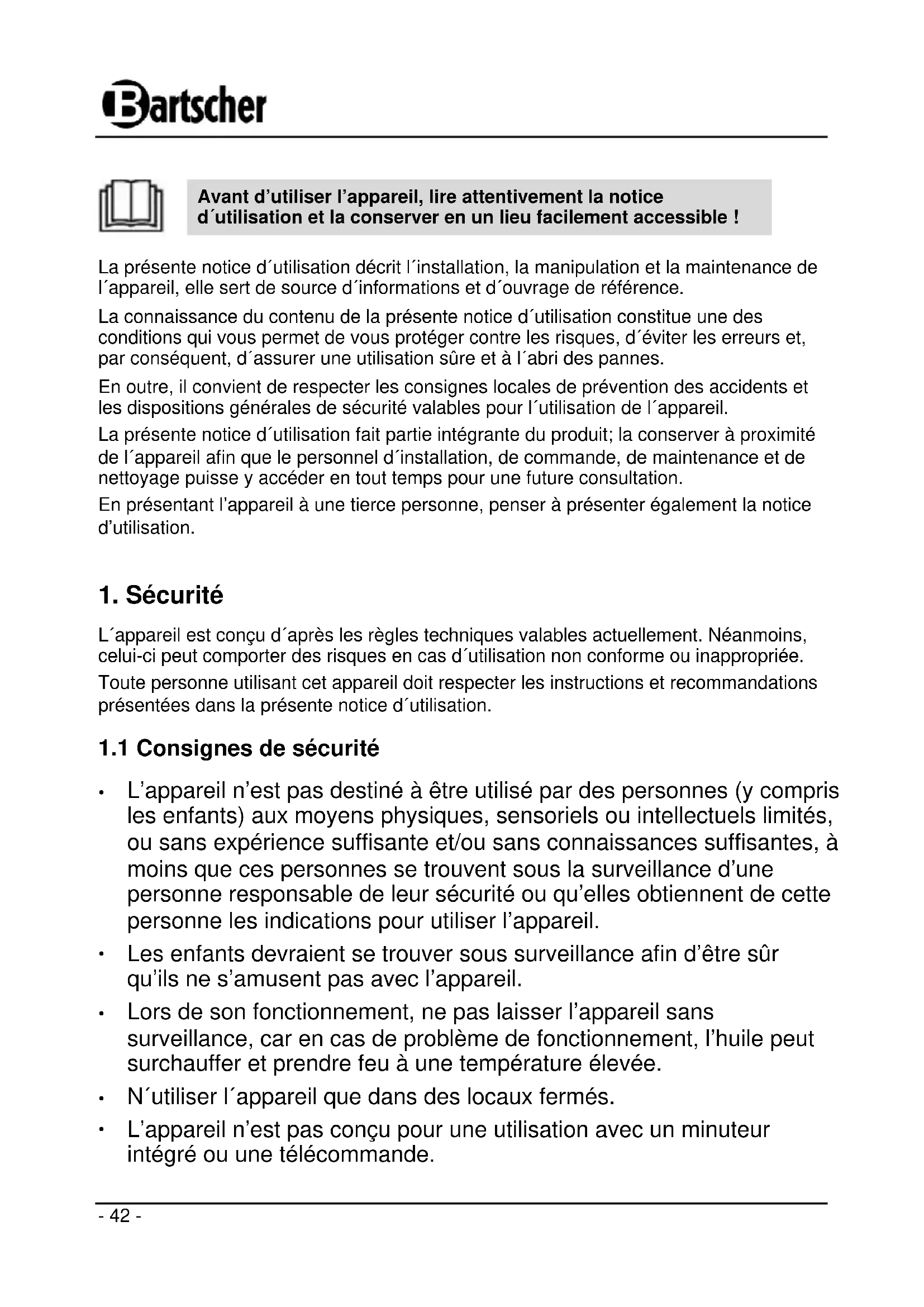 Professional II 162910 - Friteuse BARTSCHER - Notice d'utilisation et mode d'emploi gratuit