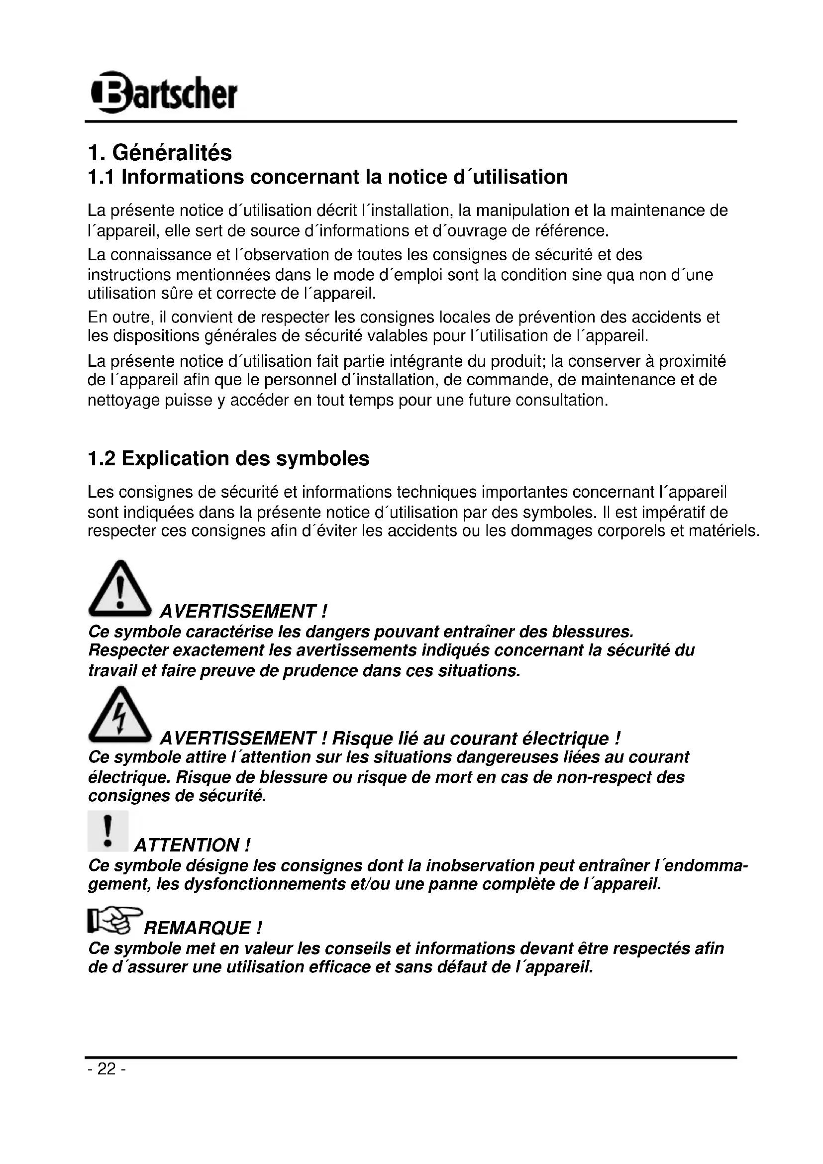 Retrouvez gratuitement la notice de l'appareil 850001 BARTSCHER au format PDF.