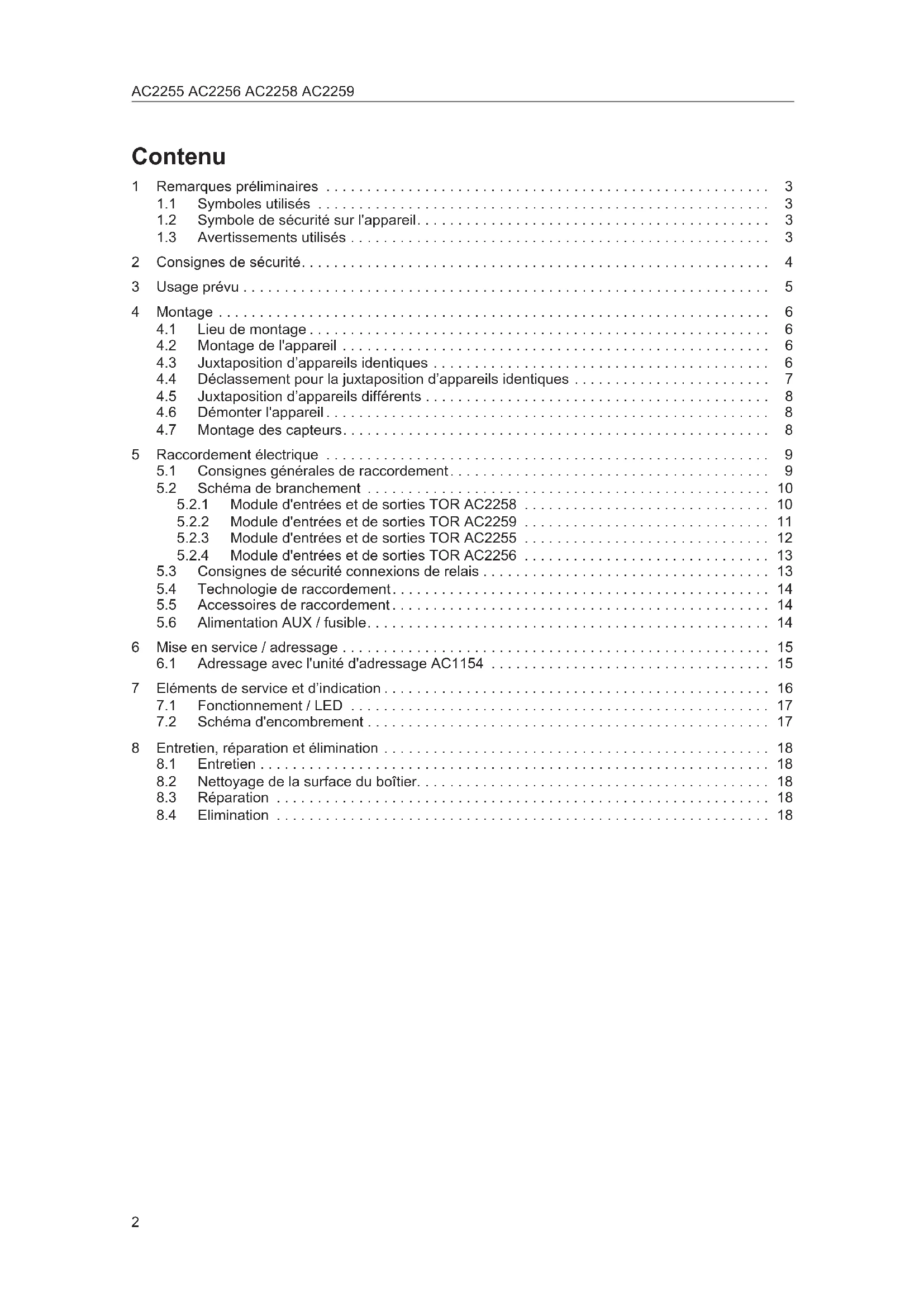 - Remplacer les appareils endommagés, car autrement les données techniques et la sécurité sont affectées.AC2255 AC2256 AC2258 AC2259