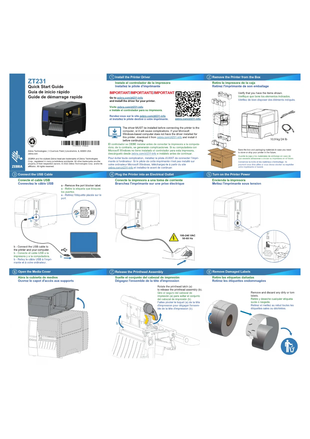 Retrouvez gratuitement la notice de l'appareil ZT231 ZEBRA au format PDF.