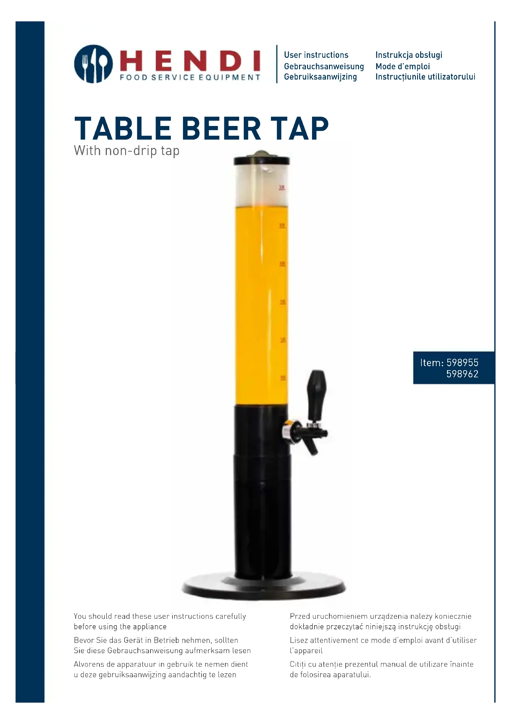 598962 - Tireuse à bière Hendi - Notice d'utilisation et mode d'emploi gratuit