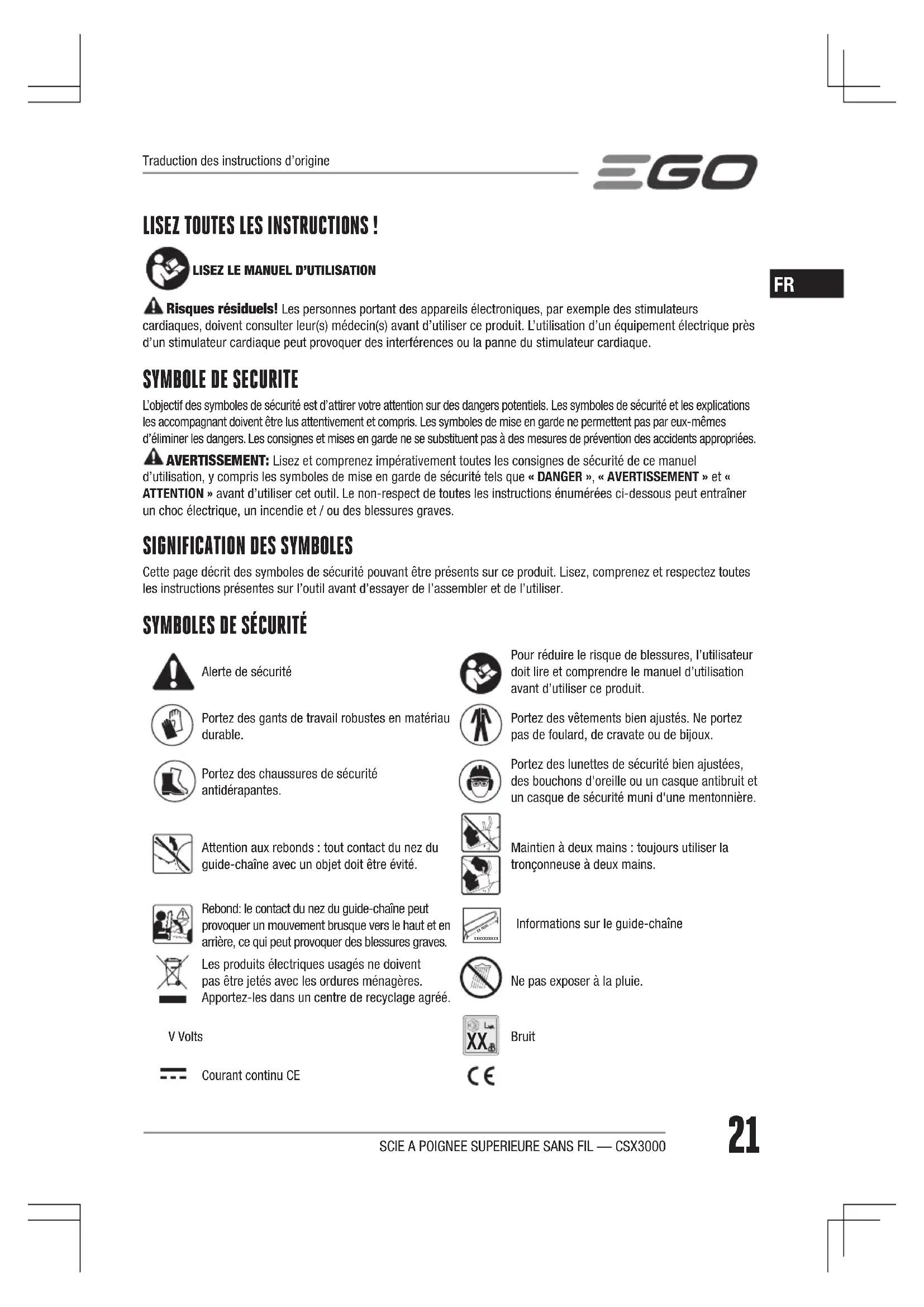 CSX3000 - Scie EGO - Notice d'utilisation et mode d'emploi gratuit