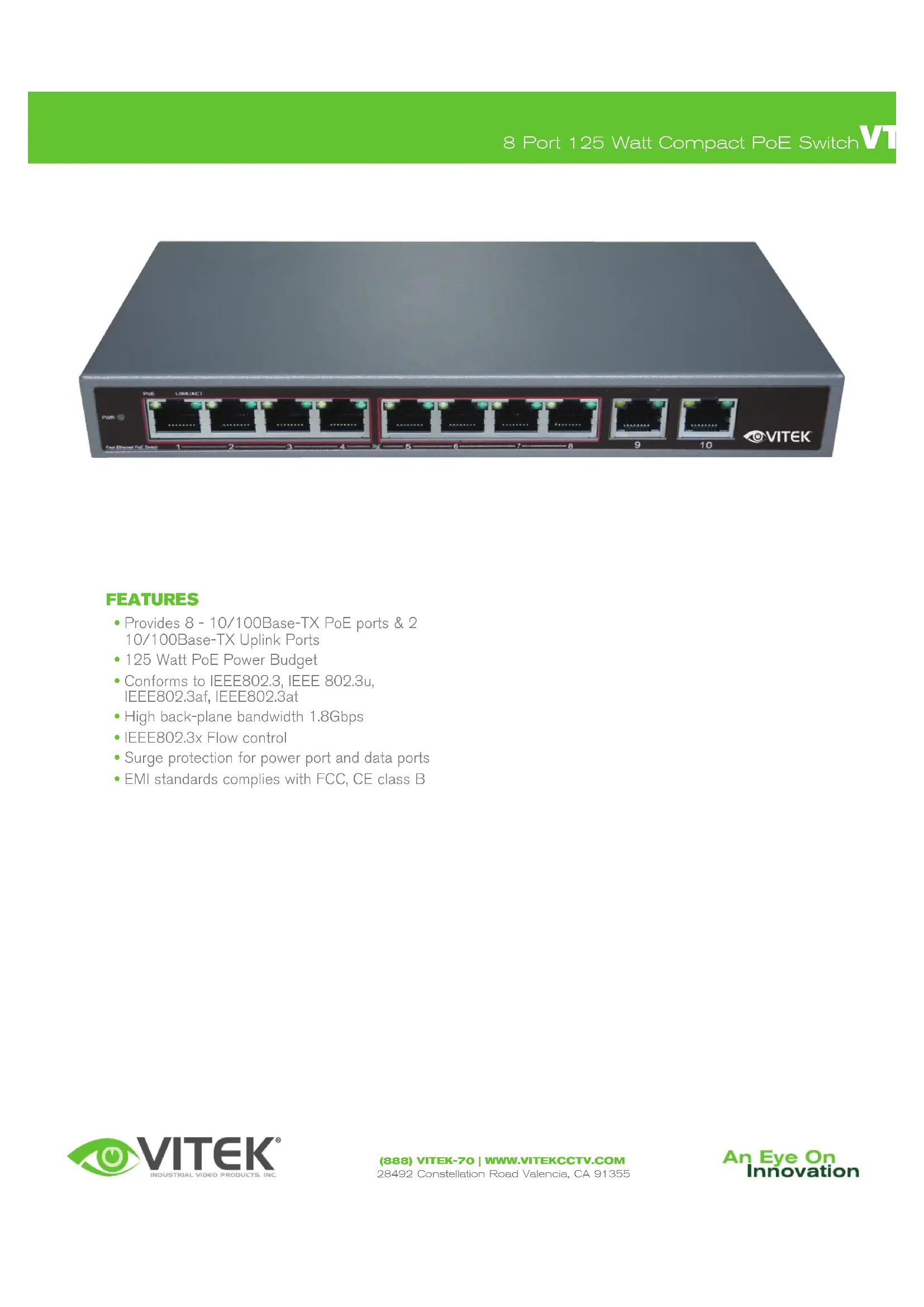 VT8P125 - Commutateur Vitek - Notice d'utilisation et mode d'emploi gratuit
