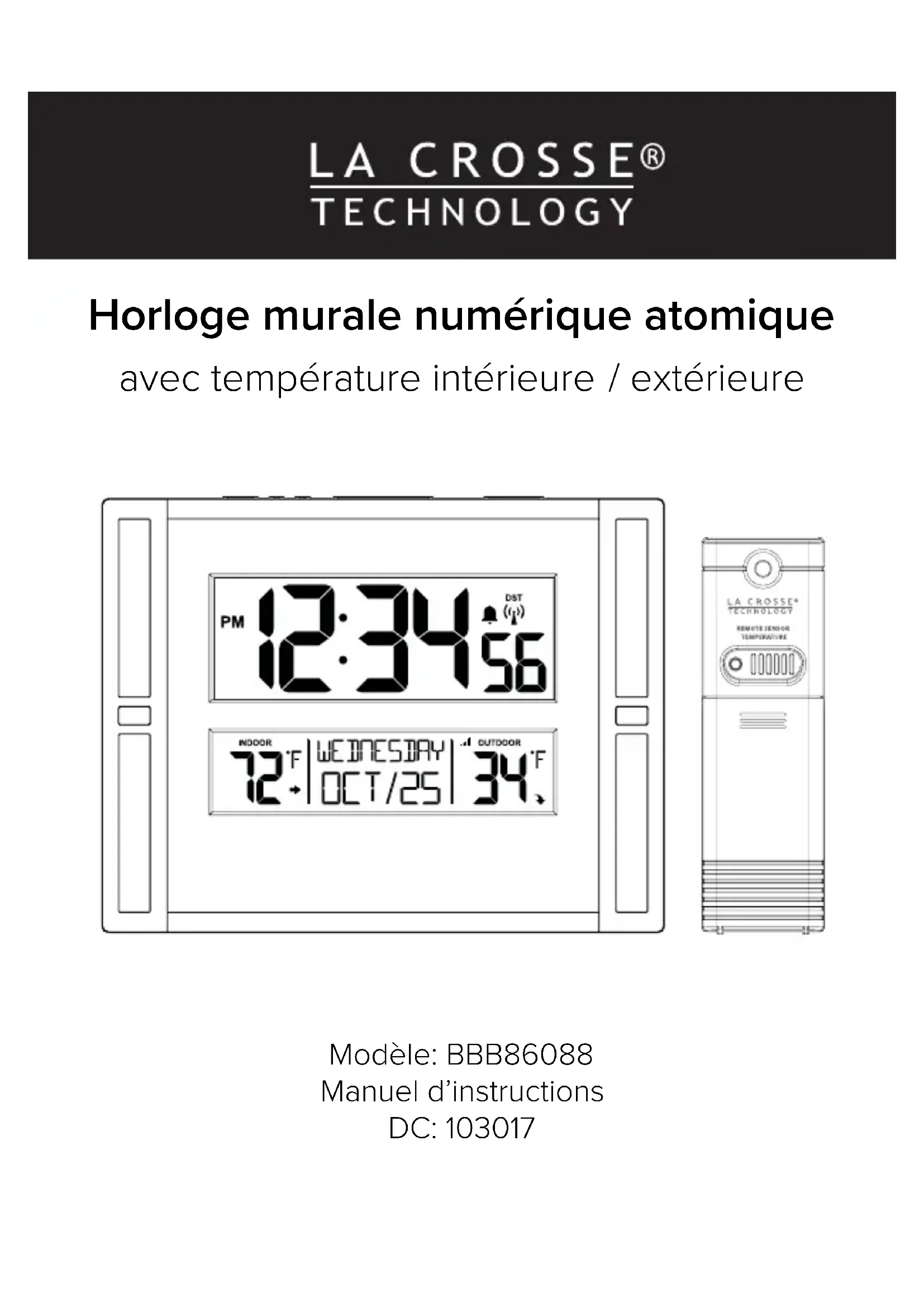 BBB86088V3 - Horloge LA CROSSE TECHNOLOGY - Notice d'utilisation et mode d'emploi gratuit