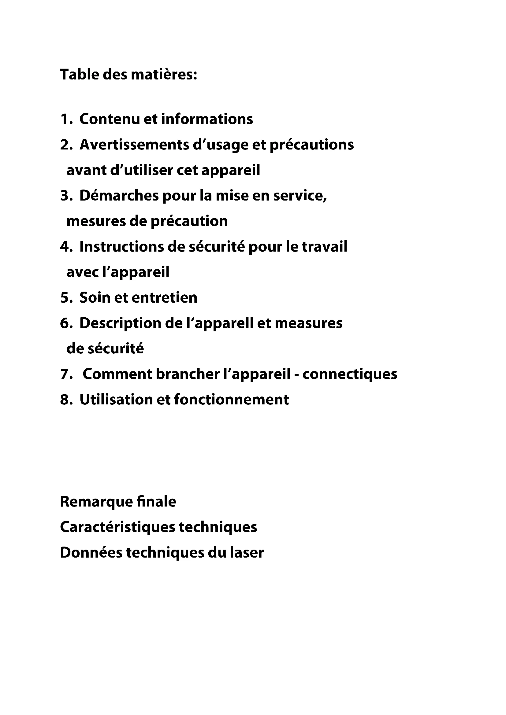 - Description de l'apparell et measures de sécurité