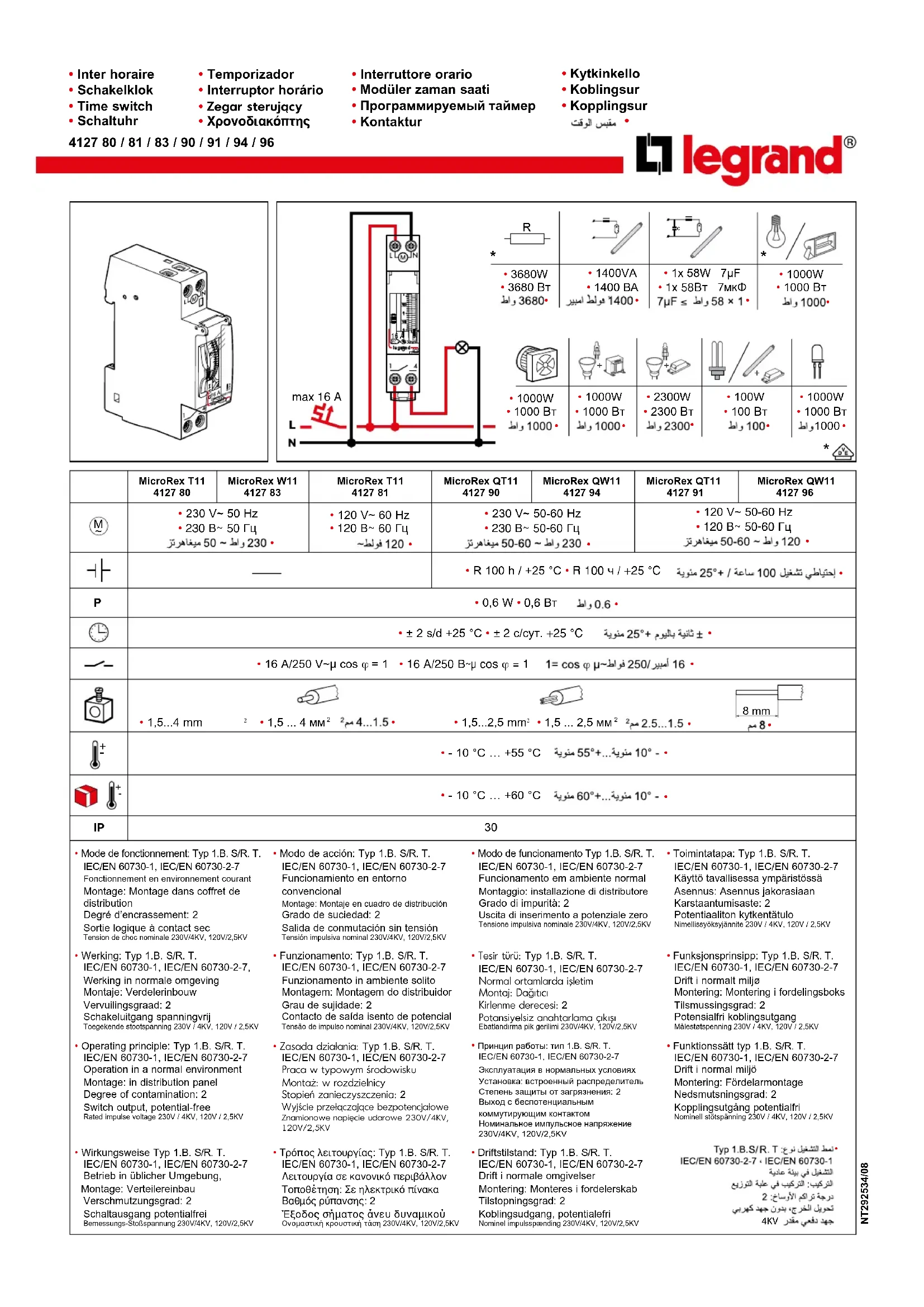 MicroRex W11 - Commutateur horaire numérique LEGRAND - Notice d'utilisation et mode d'emploi gratuit