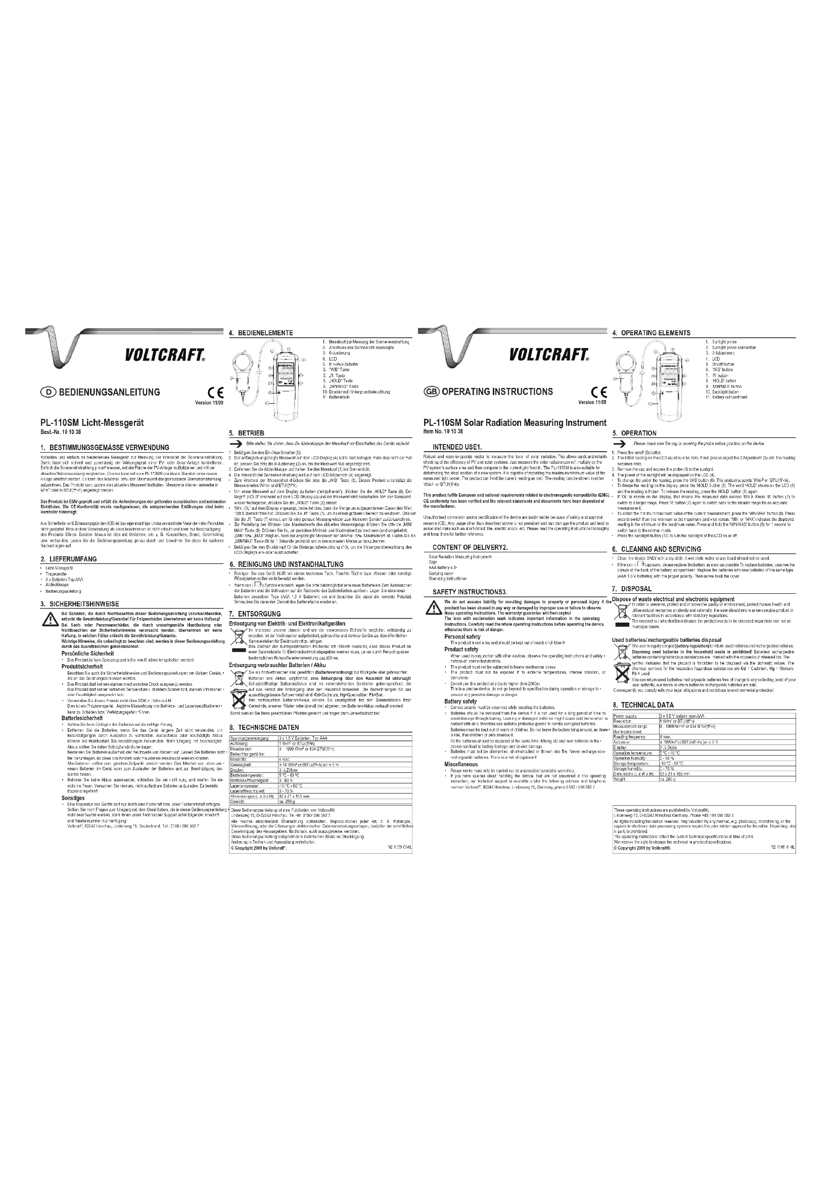 Retrouvez gratuitement la notice de l'appareil PL110SM VOLTCRAFT au format PDF.