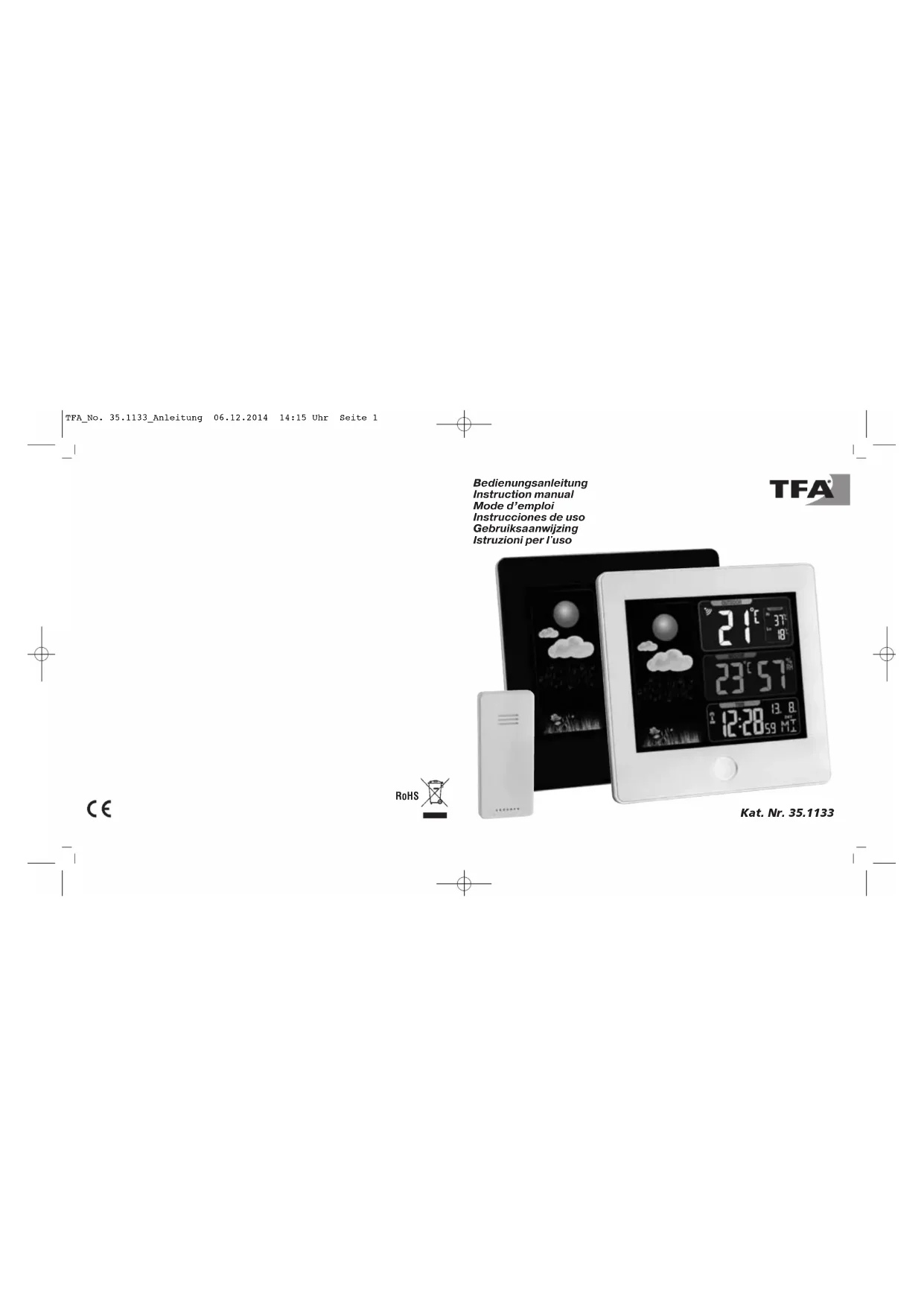 Conservez le produit hors de la portée de personnes (enfants compris) inaptes à évaluer les risques possibles liés au maniement d'appareils électriques. TFA_No. 35.1133_Anleitung 06.12.2014 14:15 Uhr Seite 163332 SUN - Station météo radio-pilotée