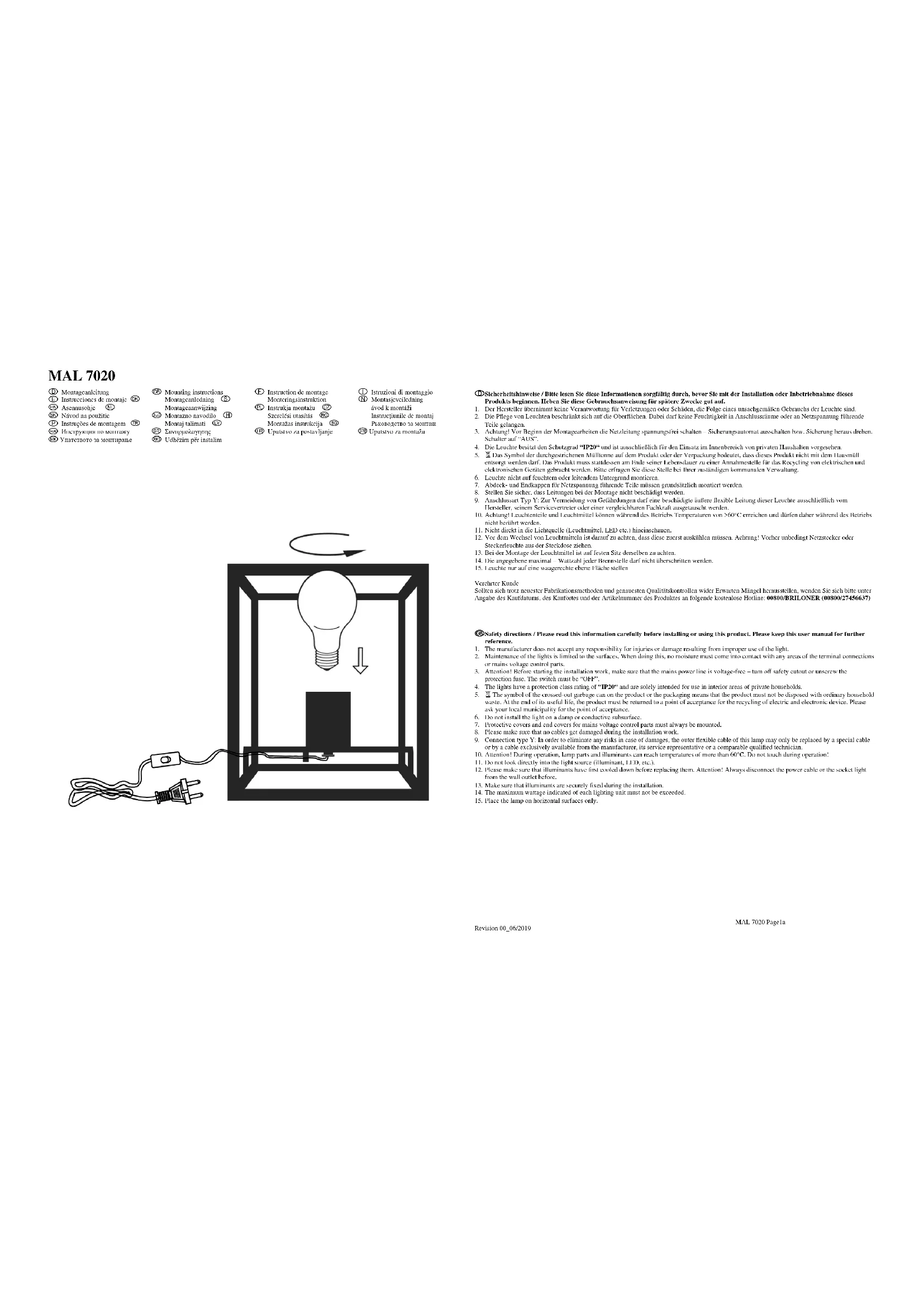 MAL 7020 - Lampe Briloner - Notice d'utilisation et mode d'emploi gratuit