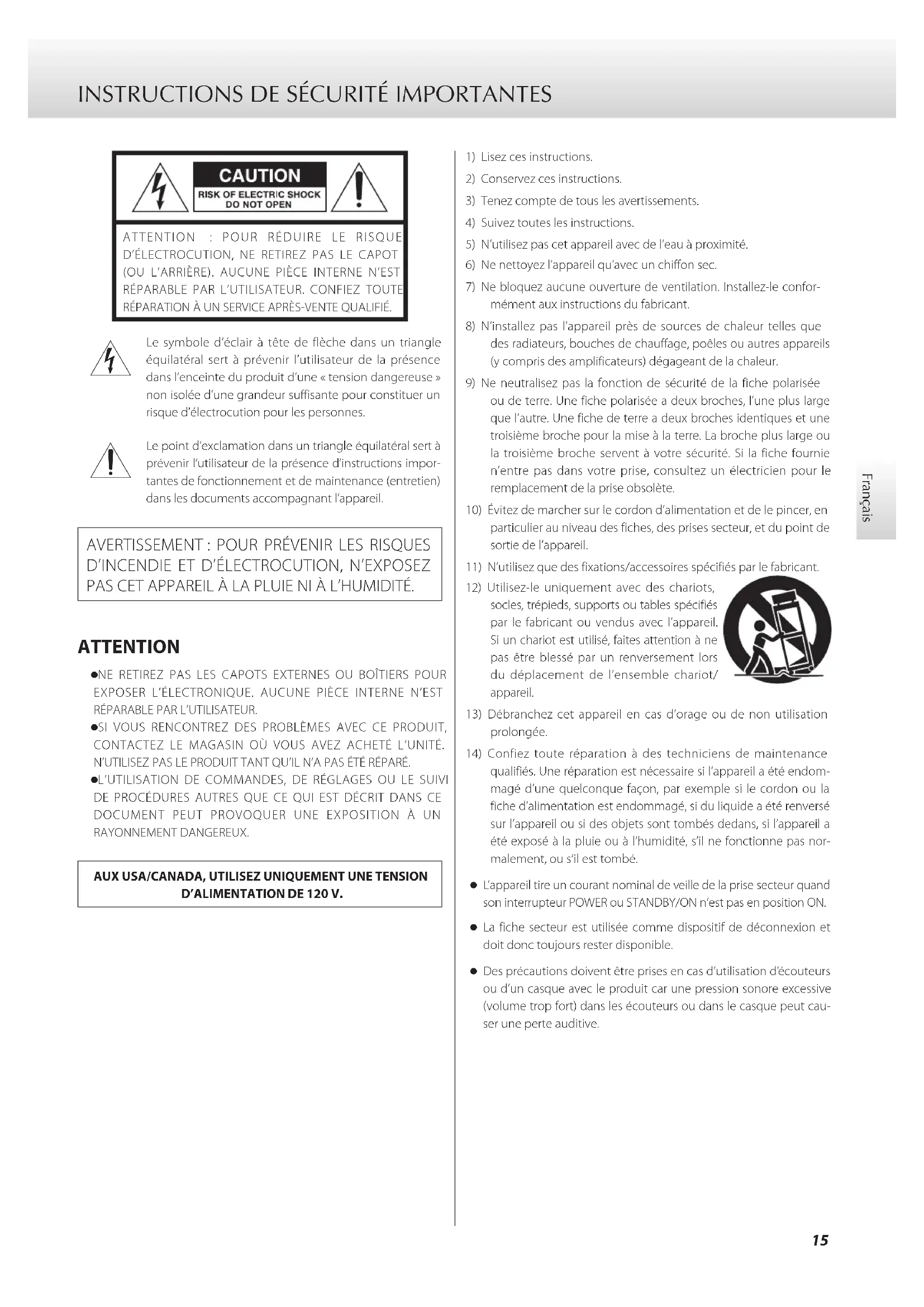 INSTRUCTIONS DE SÉCURITÉ IMPORTANTES .......................15