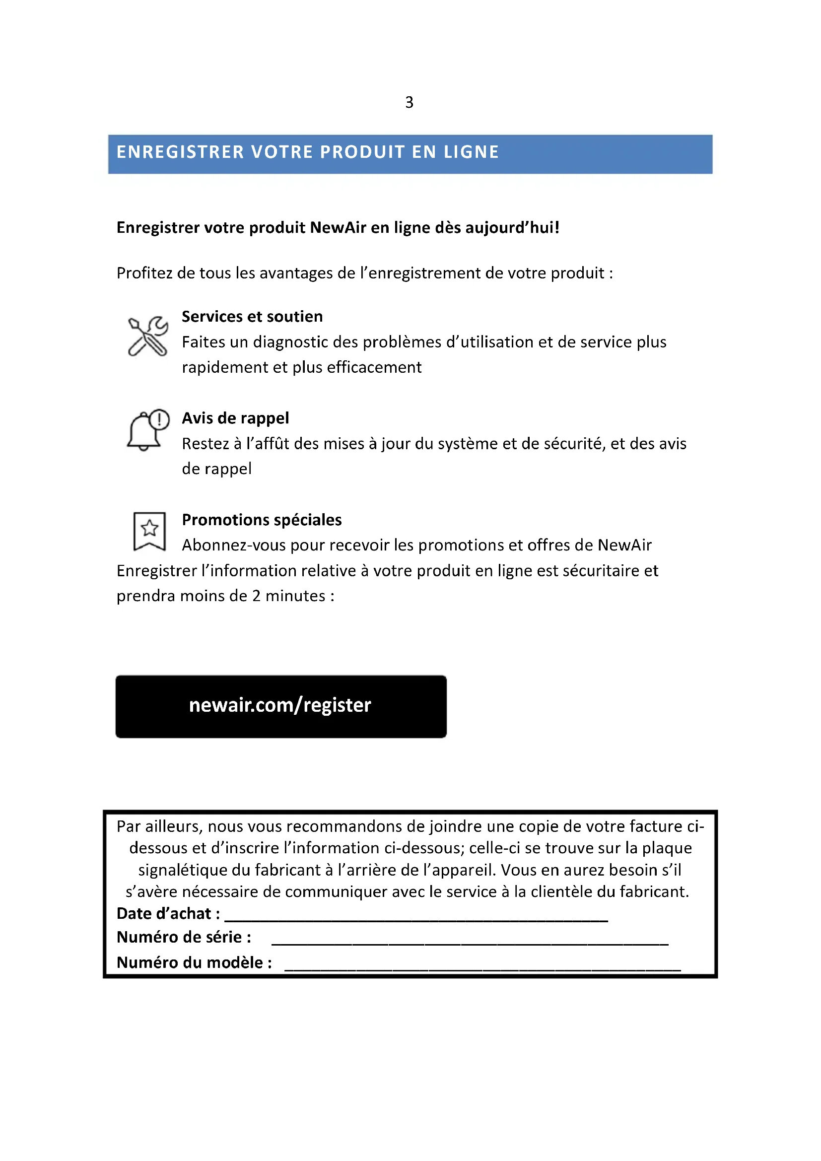 Enregistrer votre produit NewAir en ligne depuis aujourd'hui!