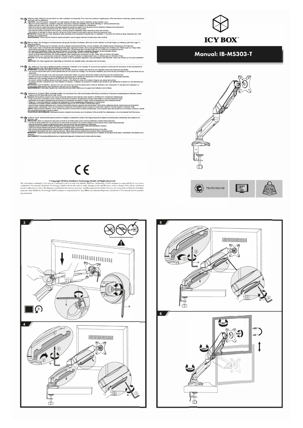 Téléchargez la notice de votre Support écran plat au format PDF gratuitement ! Retrouvez votre notice IBMS303T - Icy Box et reprennez votre appareil électronique en main. Sur cette page sont publiés tous les documents nécessaires à l'utilisation de votre appareil IBMS303T de la marque Icy Box.