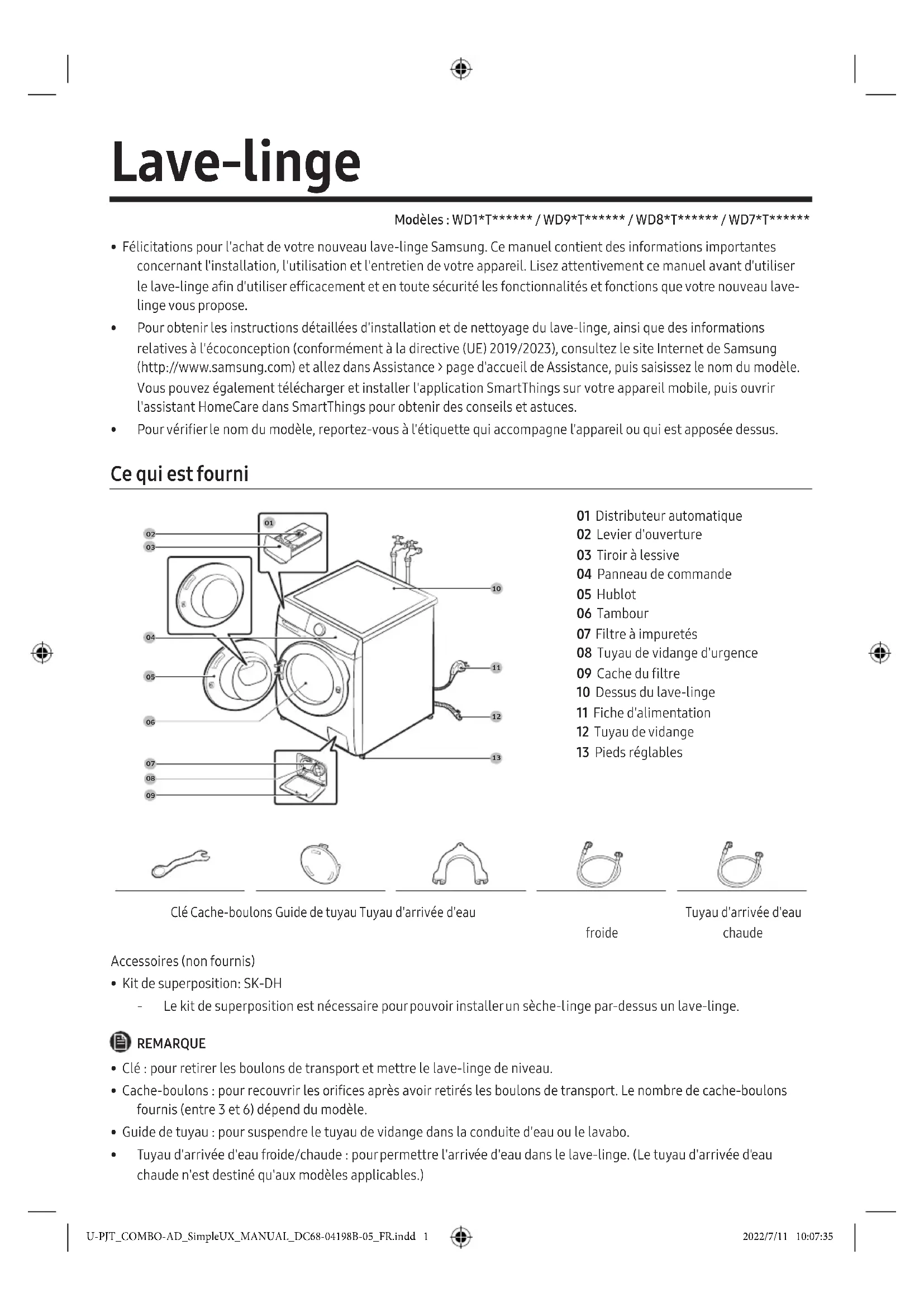 MODE D'EMPLOI WD80T534ABE SAMSUNG