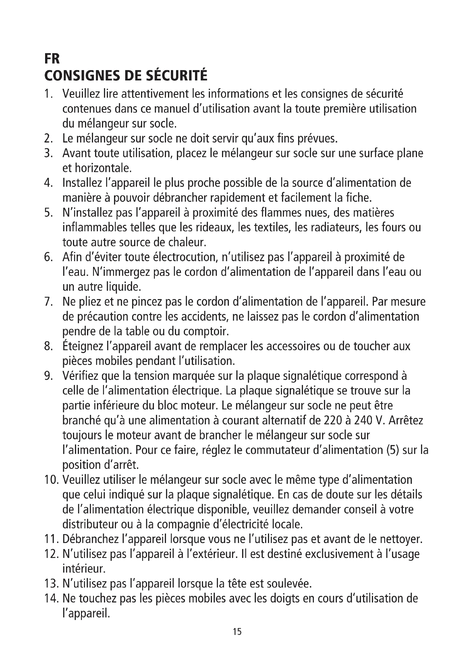 - Le mélangeur sur socle ne doit servir qu'aux fins prévues.