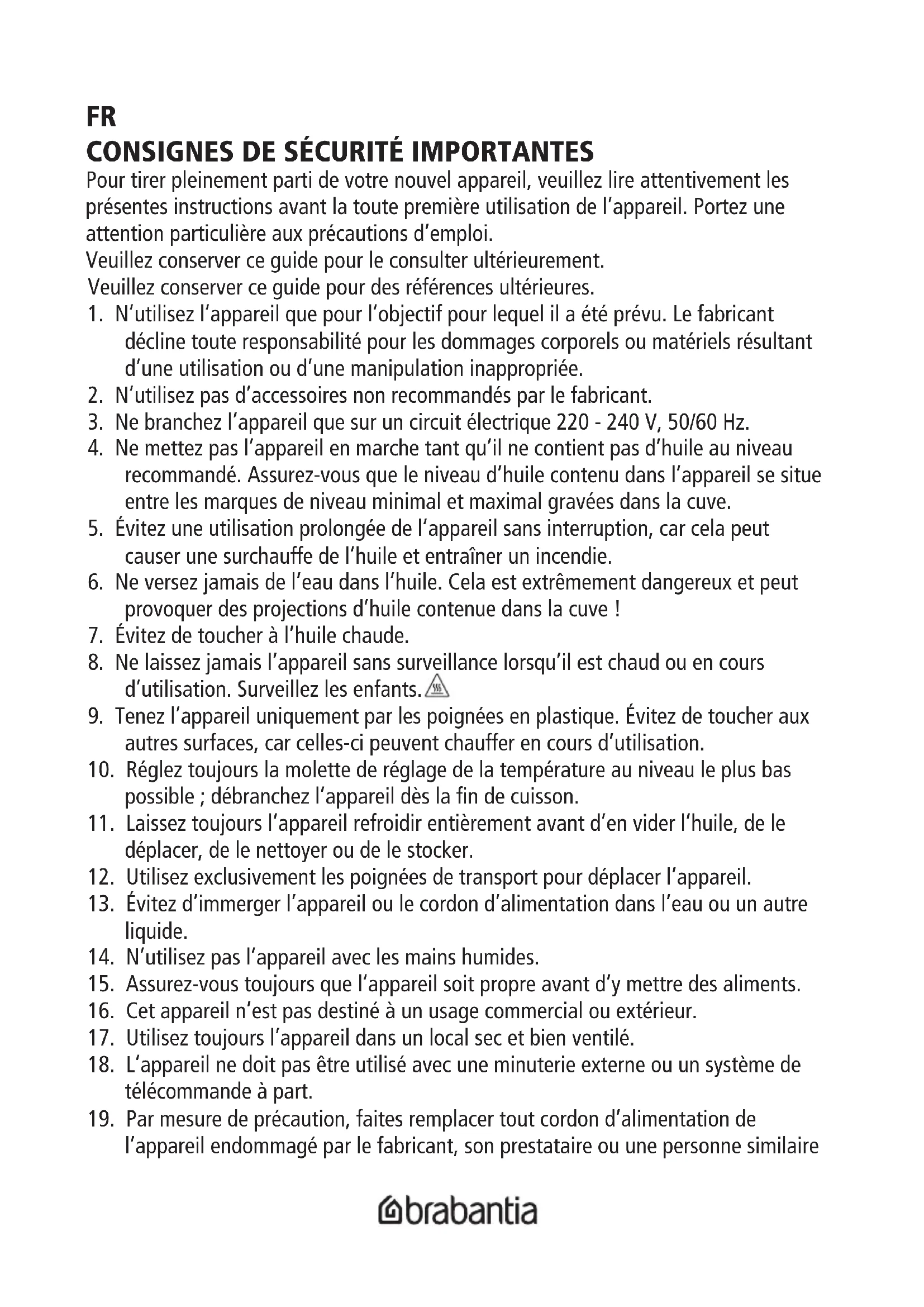 BBEK1130 - Friteuse BRABANTIA - Notice d'utilisation et mode d'emploi gratuit