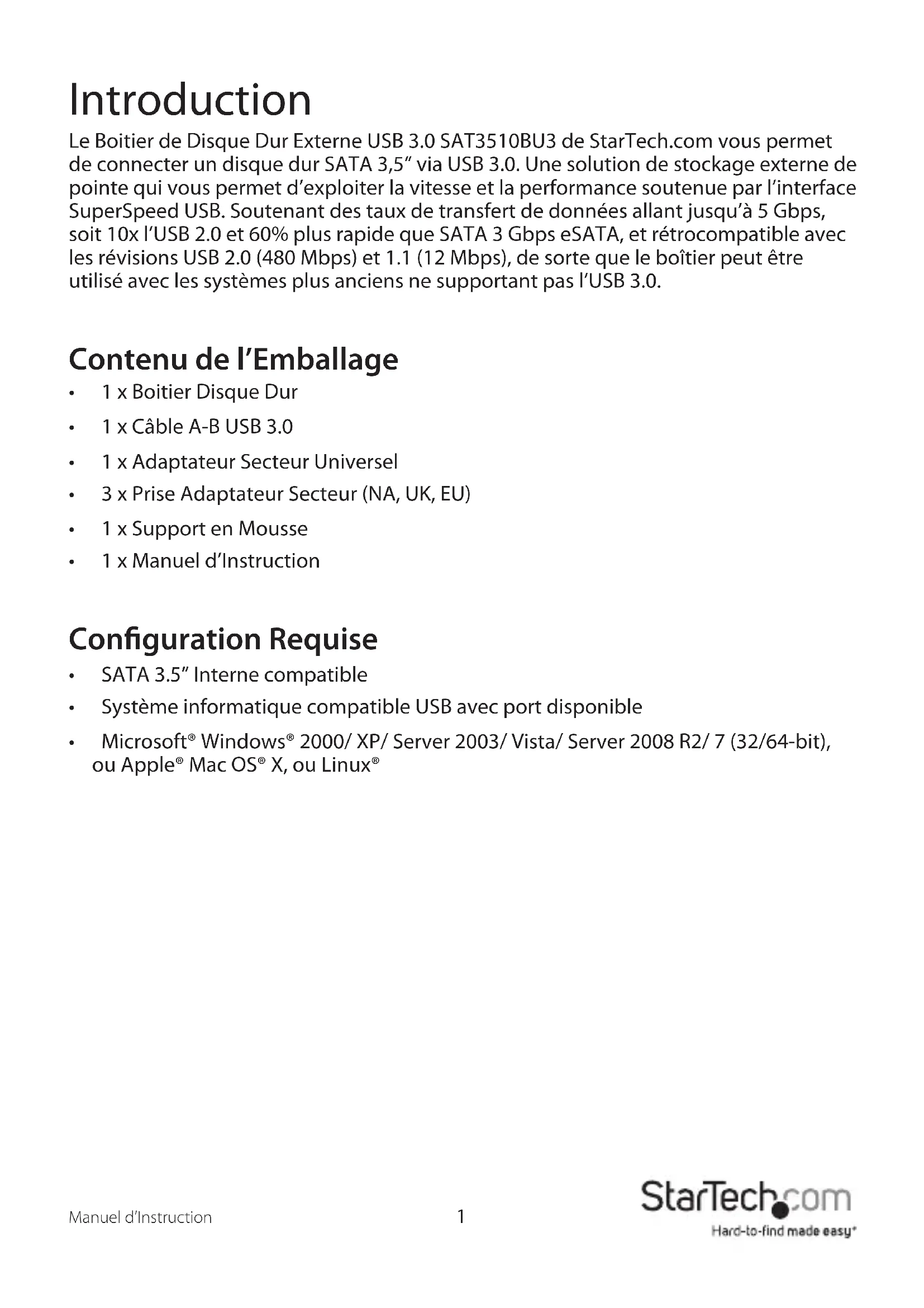 SAT3510BU3 - Boîte de stockage StarTech.com - Notice d'utilisation et mode d'emploi gratuit