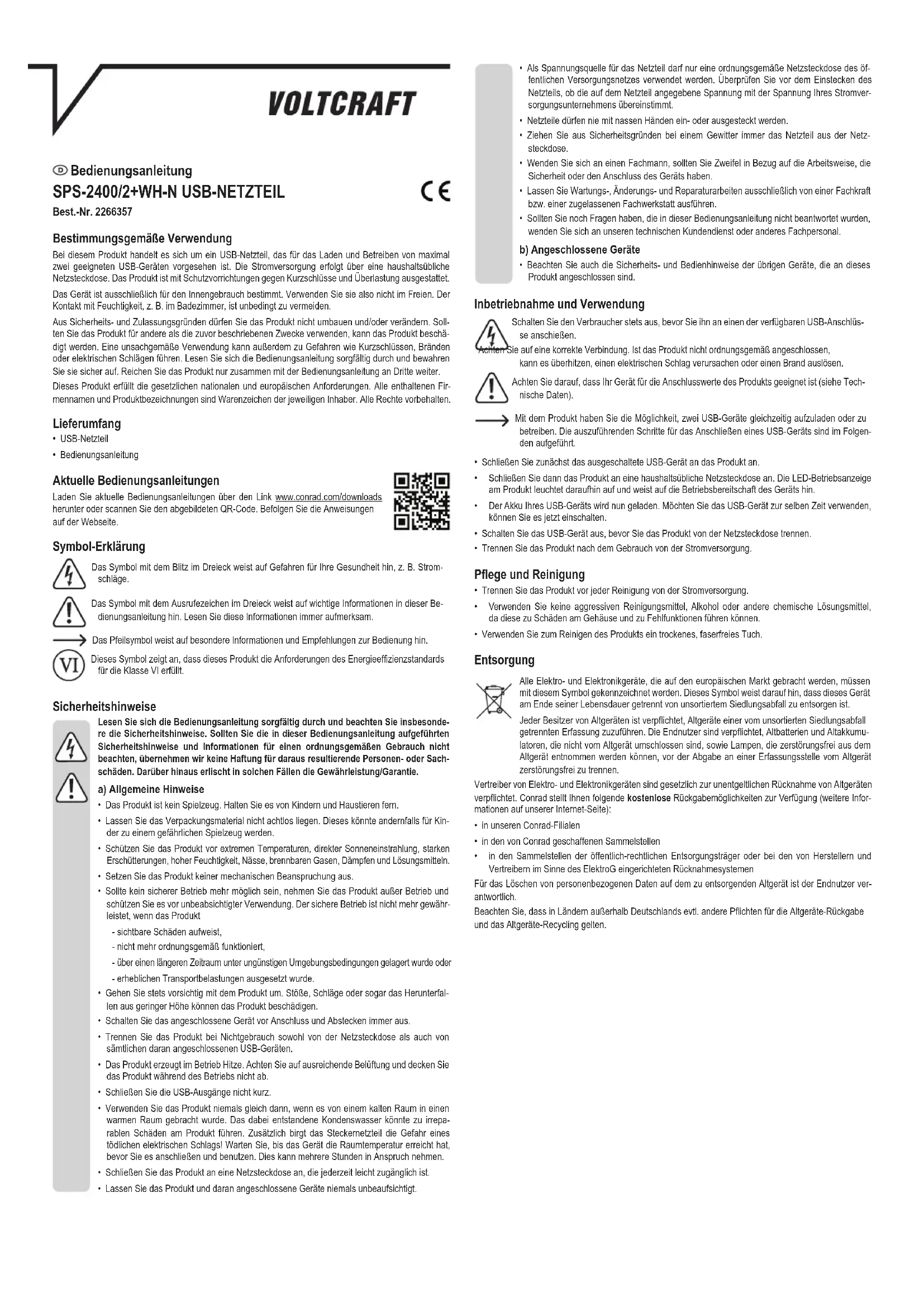 SPS24002+WHN - Chargeur téléphone portable VOLTCRAFT - Notice d'utilisation et mode d'emploi gratuit