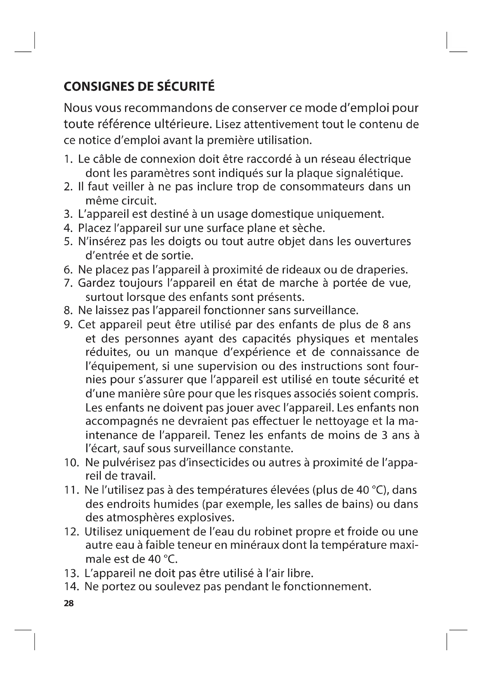 8. Ne laissez pas l’appareil fonctionner sans surveillance.