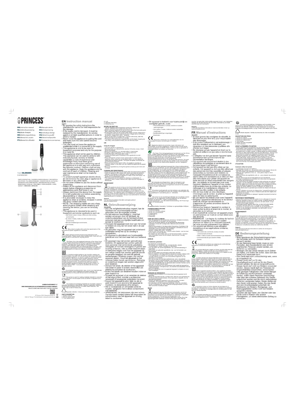 221229 - Mixeur plongeant PRINCESS - Notice d'utilisation et mode d'emploi gratuit