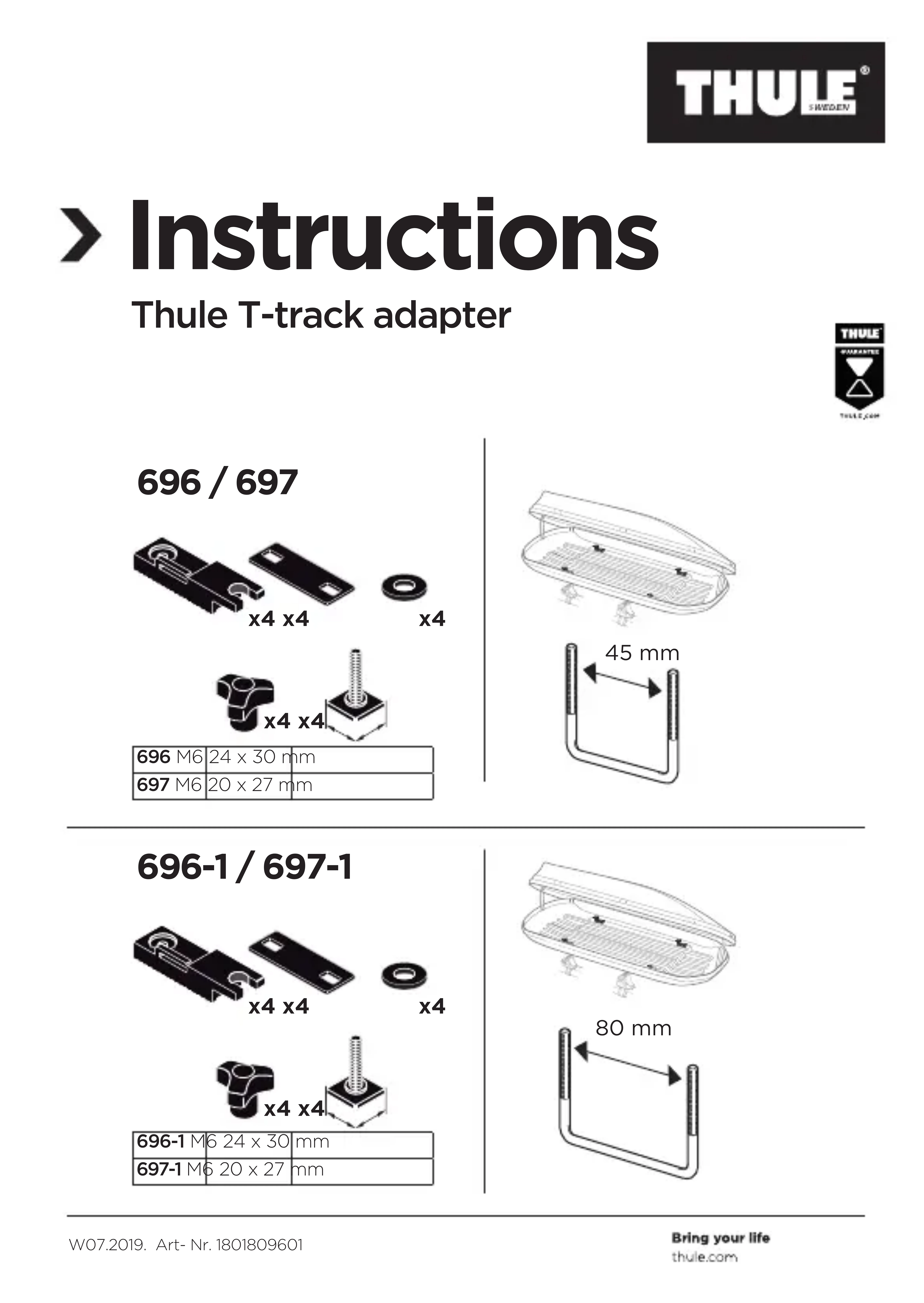 Retrouvez gratuitement la notice de l'appareil Ttrack Adapter 6971 THULE au format PDF.