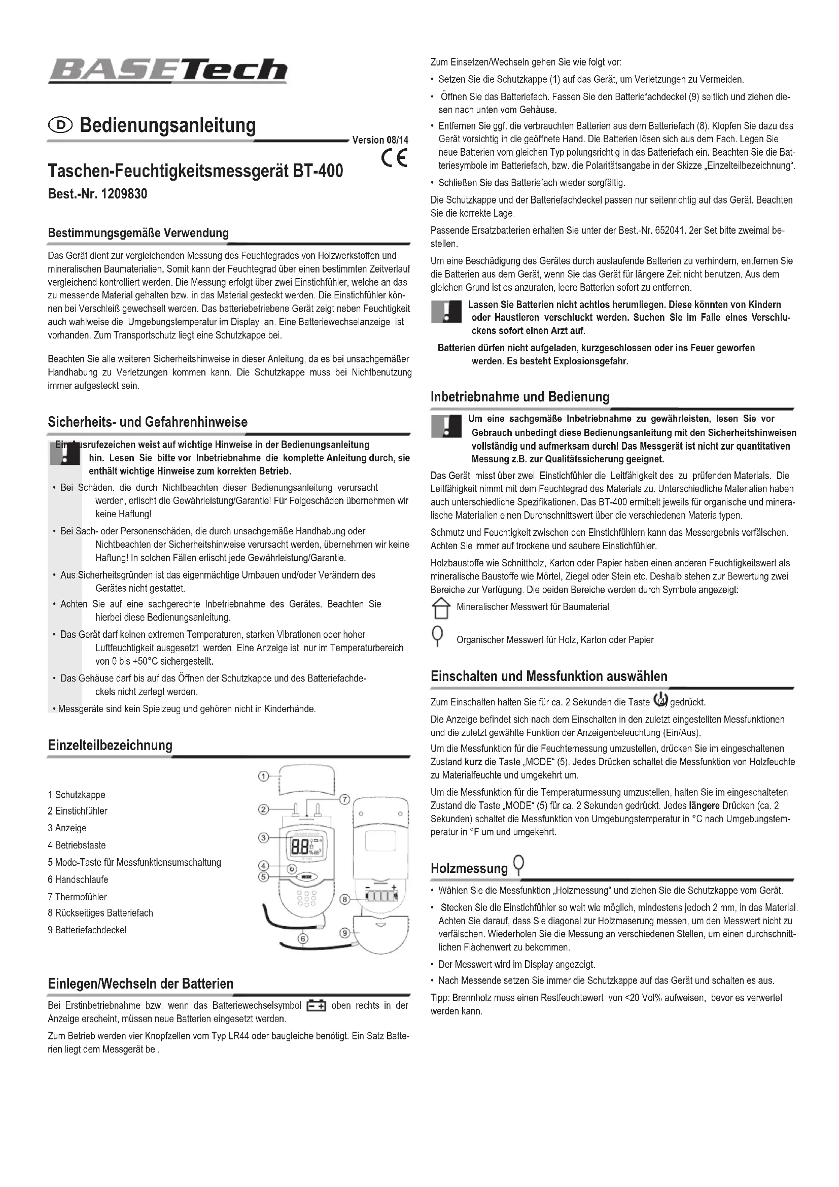 BT400 - Humidimètre portatif BASETECH - Notice d'utilisation et mode d'emploi gratuit