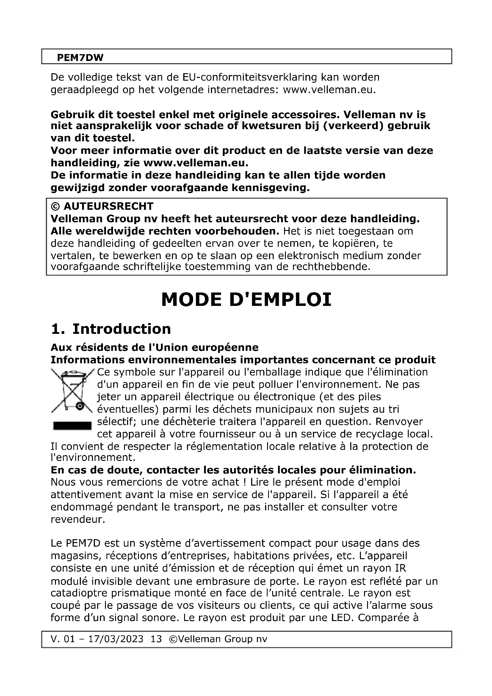 V. 01 – 17/03/2023 14 ©Velleman Group nv
