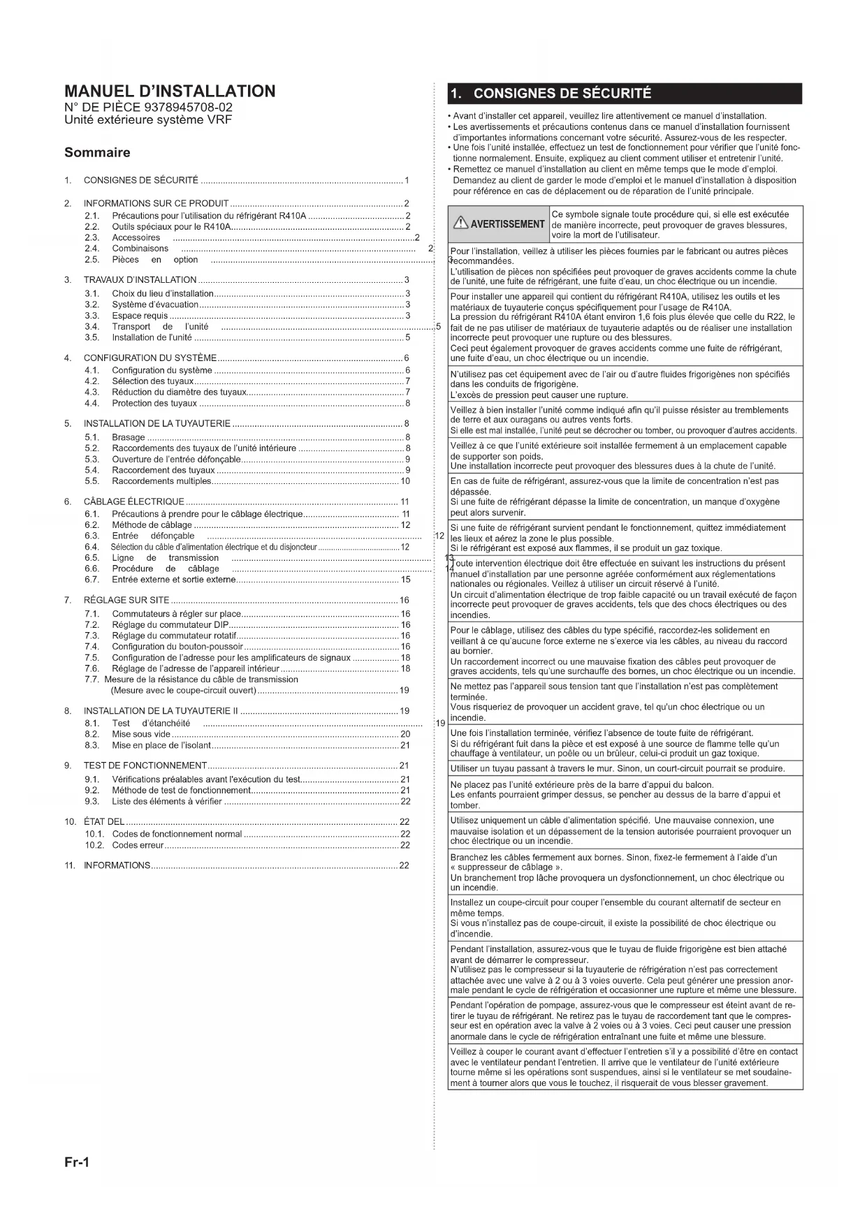 Les averissements et precautions contenus dans ce manuel d'installation fournissant