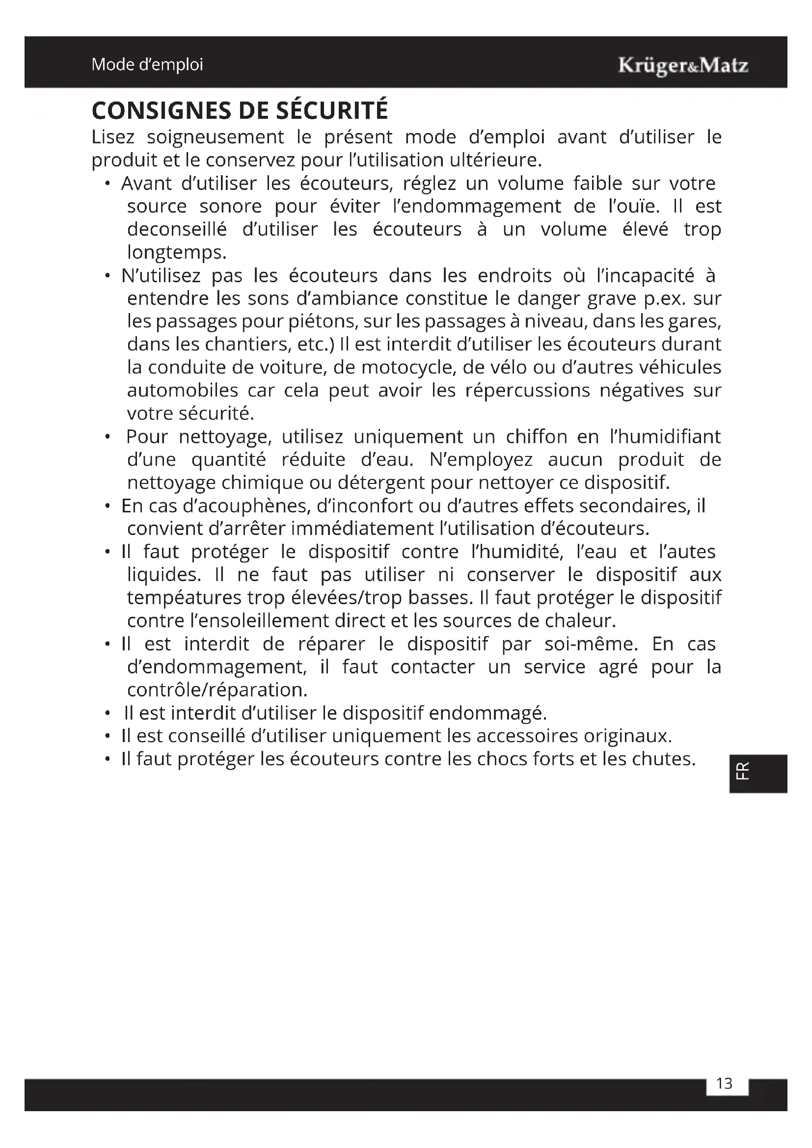 Street Kids KM0656 - Ecouteur Krüger&Matz - Notice d'utilisation et mode d'emploi gratuit