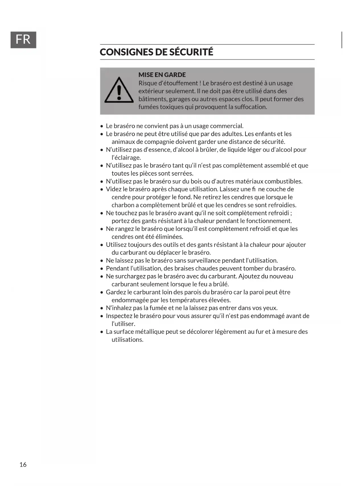 - Le braséro ne peut être utilisé que par des adultes. Les enfants et les animaux de compagnie doivent garder une distance de sécurité.