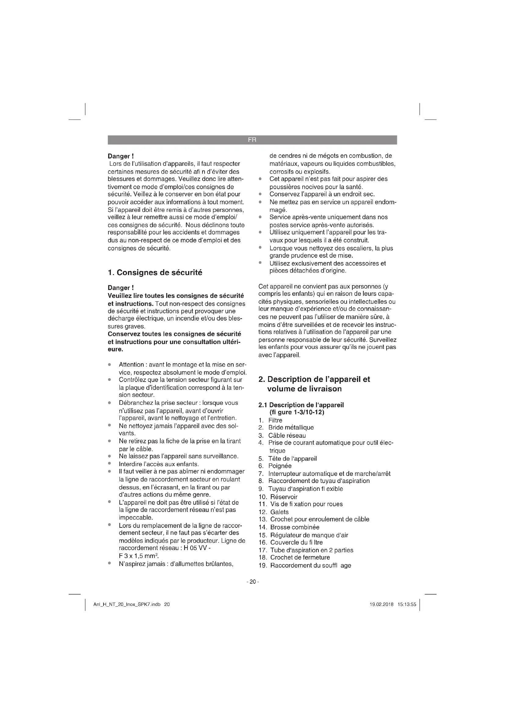 HNT 20 Inox - Aspirateur Herkules - Notice d'utilisation et mode d'emploi gratuit